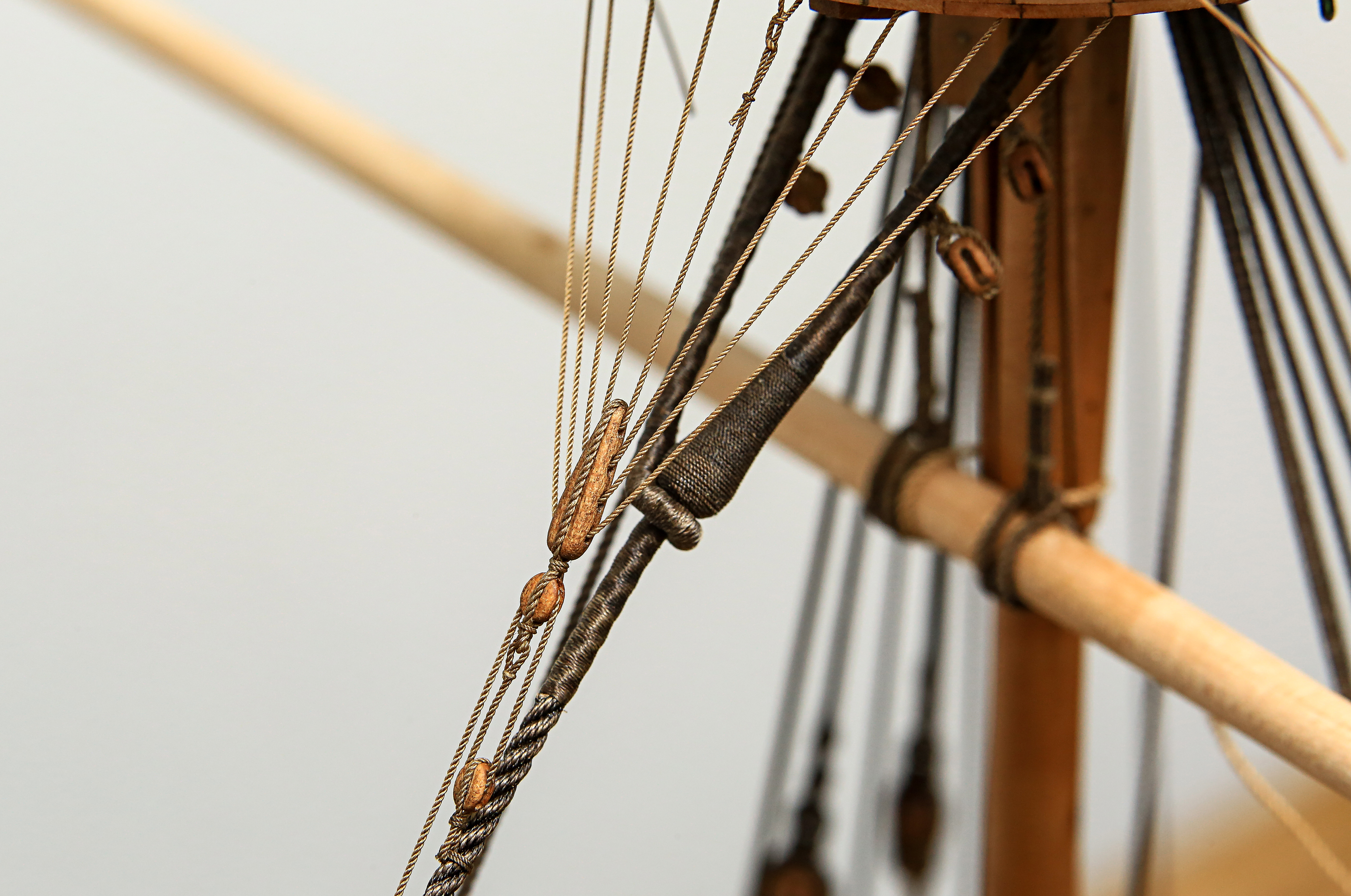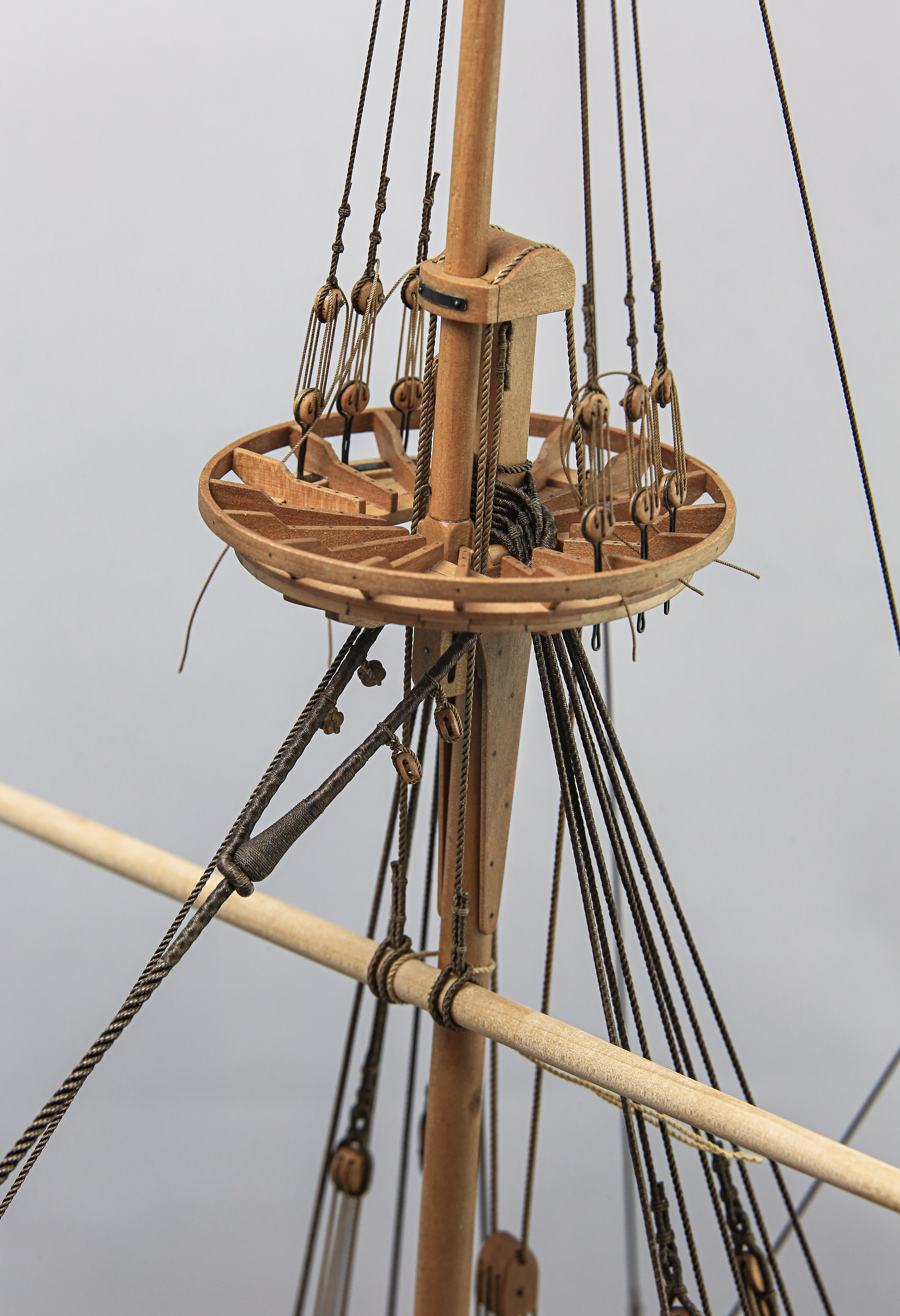 Dla zainteresowanych, ta ciekawa cześć takielunku służyła, aby żagiel nie podchodził pod mars (bocianie gniazdo).