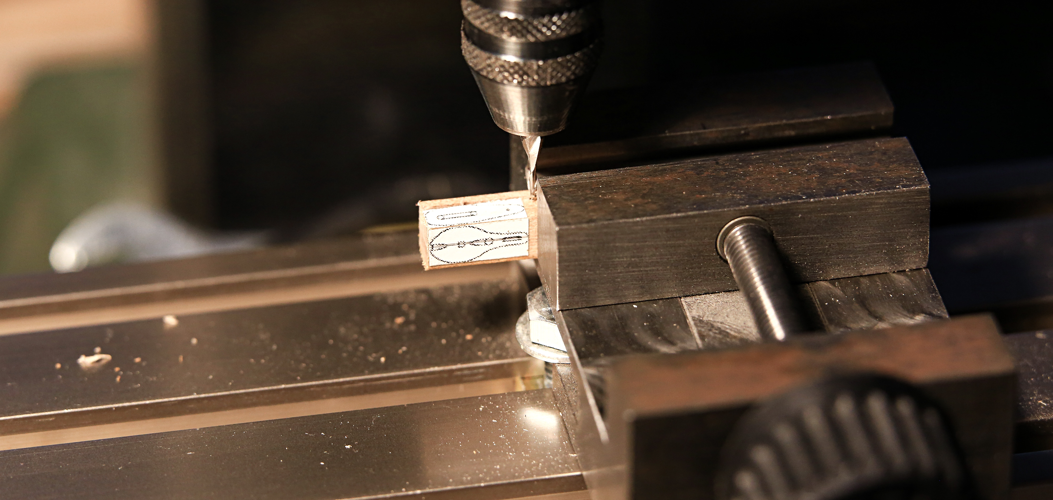 Frezareczką otworki na linki i rowki, która mają niby imitować rolkę :P