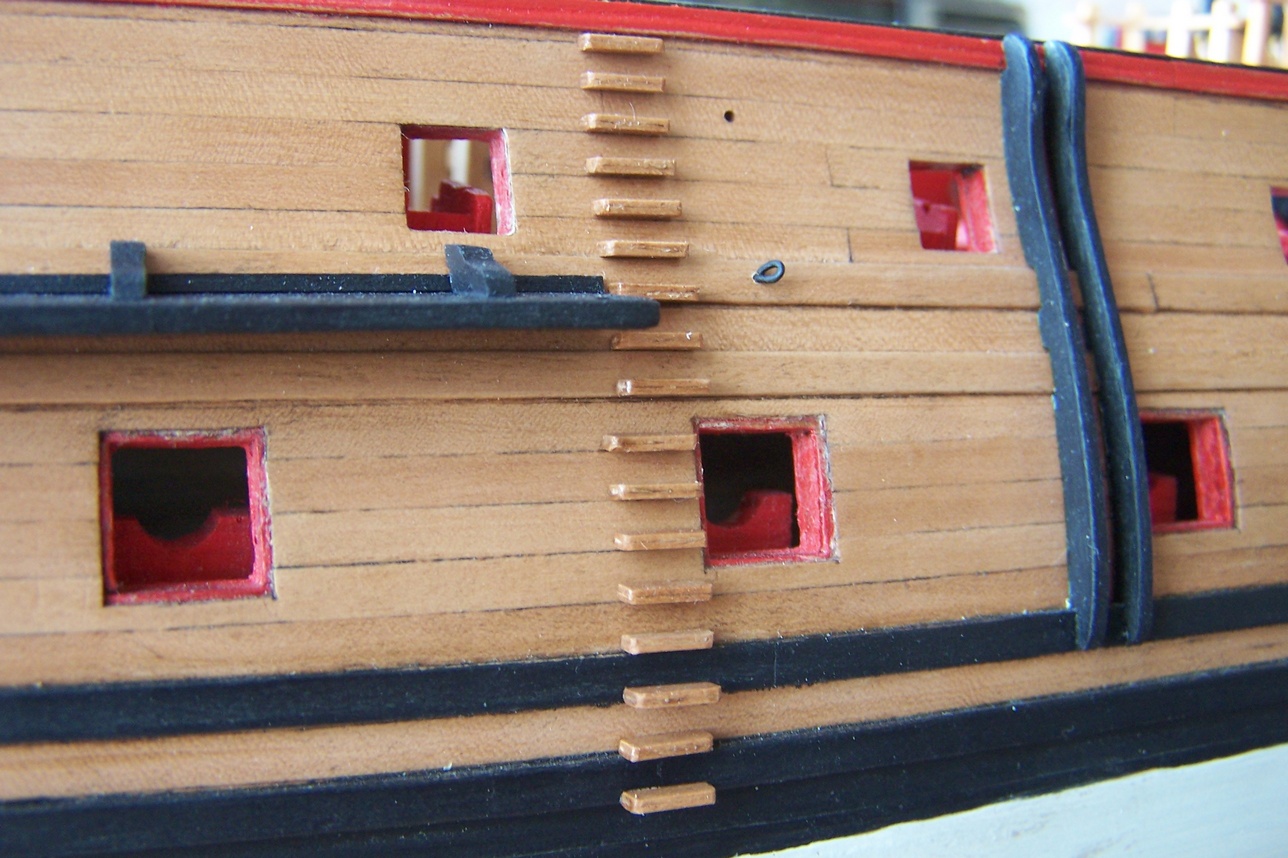 Cześć.Przybyło trochę drobiazgów.Skończyłem zdobienia na rufie.Zamocowałem ostatnie lawety jeszcze bez armat, a na koniec schodki na burtach.Jednym słowem nuda