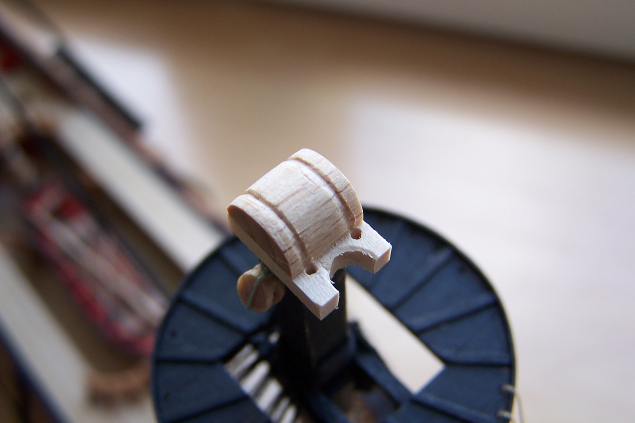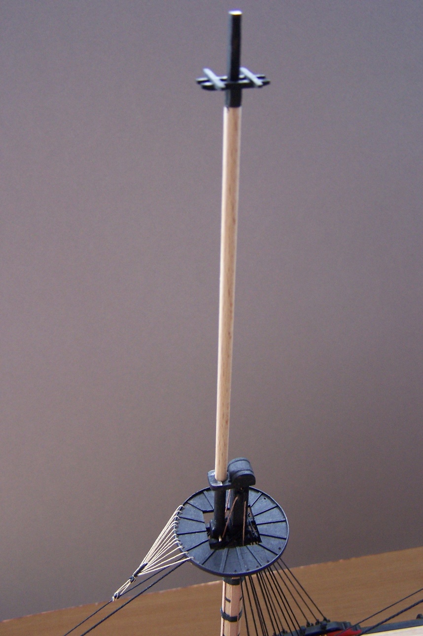 Wydaje mi się że powinny być 3 belki poprzeczne.Ta trzecia krótka umieszczona pomiędzy głowa a stopą masztu .Te dwie belki poprzeczne powinny być dosyć mocno wygięte do tyłu ze względu na położenie want które powinny być co najmniej w osi masztu lub trochę do tyłu.R.