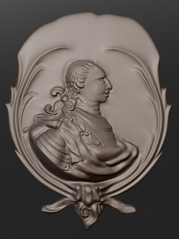 Popiersie poprawione zgodnie z nową fotką. Trzeba je jeszcze "wylizać tu" i tam ale główne elementy RACZEJ zostaną jak są. Znowu wraca kwestia zwieńczenia.