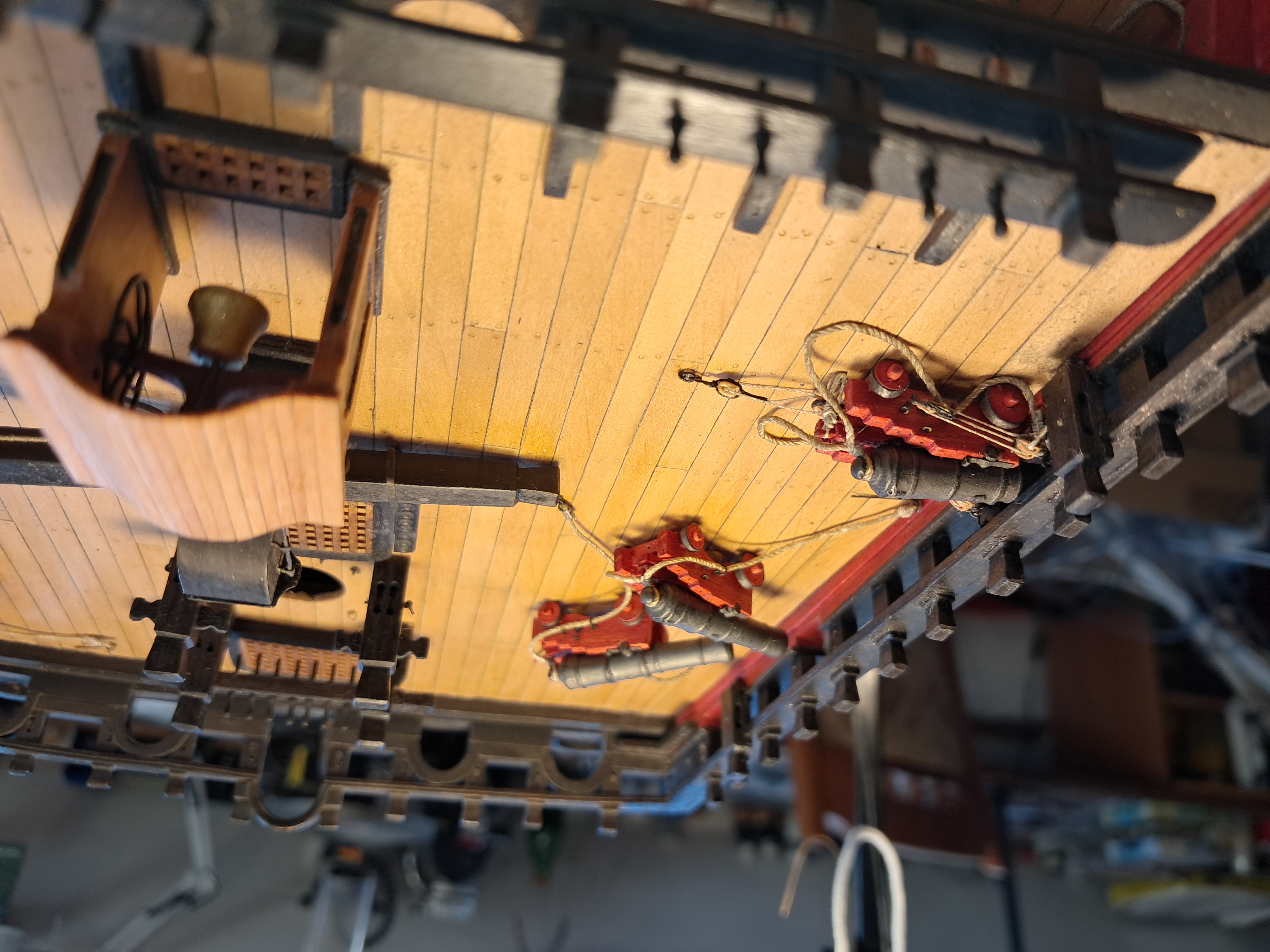 Tak to jest jak zdjęcia ładuje się z Australii- w nawiązaniu do ostatnich fotek. Na półkuli północnej wszystko się dobrze ładuje. Artyleria w pełni widoczna na pokładach jest gotowa- mam koniec dłubania przy taliach lawet. Zostaje zrobić formę i odlać działa pierwszego pokładu bateryjnego... Na teraz kilka zdjęć ze stanu budowy RW