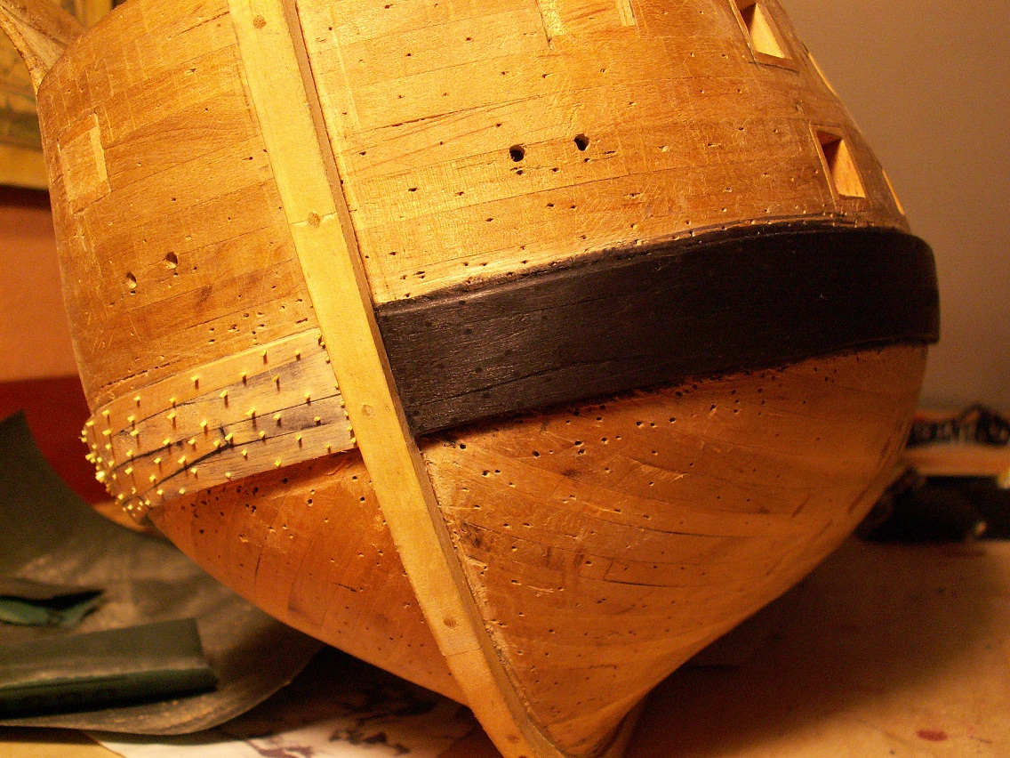 Adam okręty wojenne jak i inne z epoki remontowano więc kołki i mocowania mogły się rozbiegać w trakcie wymiany częściowego poszycia lub jednostkowych desek. Także jak się gdzieś walniesz z kołkami to w tamtym miejscy dodaj kilka i powiedz, że to łata po kuli armatniej