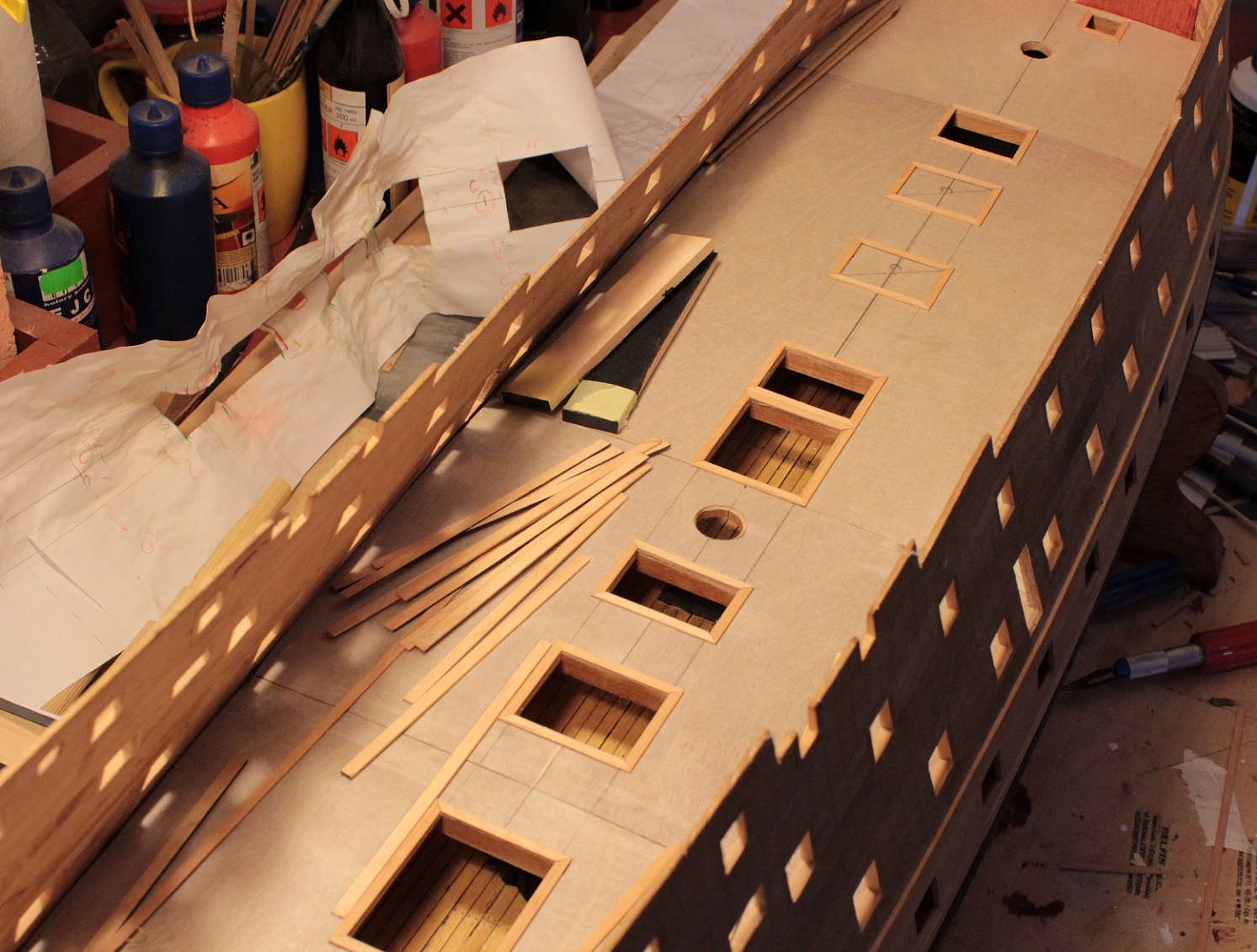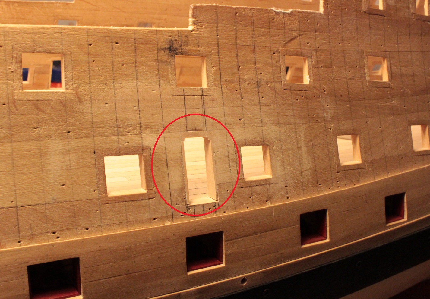 Ale wątpliwość mam jeszcze jedną. Rozwiały by to oryginalne rysunki niekoniecznie RW. Ja mam fotki takich rysunków ale w bardzo marnej rozdzielczości, na powiększeniu można się dopatrzeć, że wejście nie zaczynało się od linii pokładu, ale miało bardzo wysoki "próg". Kończący się 2/3 lub tuż nad grubą belką poszycia wzmacniającego burtę (drugi pas "wales")