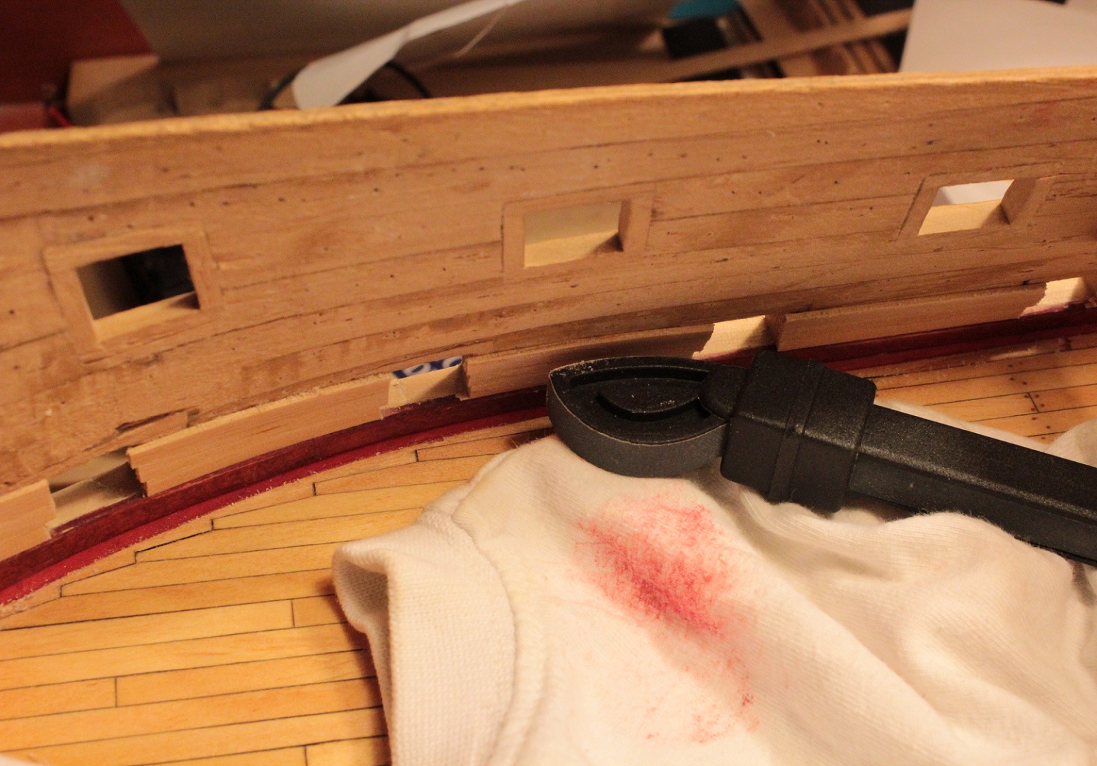 Pochwalę się jednym z suwenirów jakie dostałem od Jerrego. Wynalazek prosty i znakomicie przydaje się do szlifowania zakamarków wewnętrznych burt. Jerry, jeszcze raz dzięki:)
