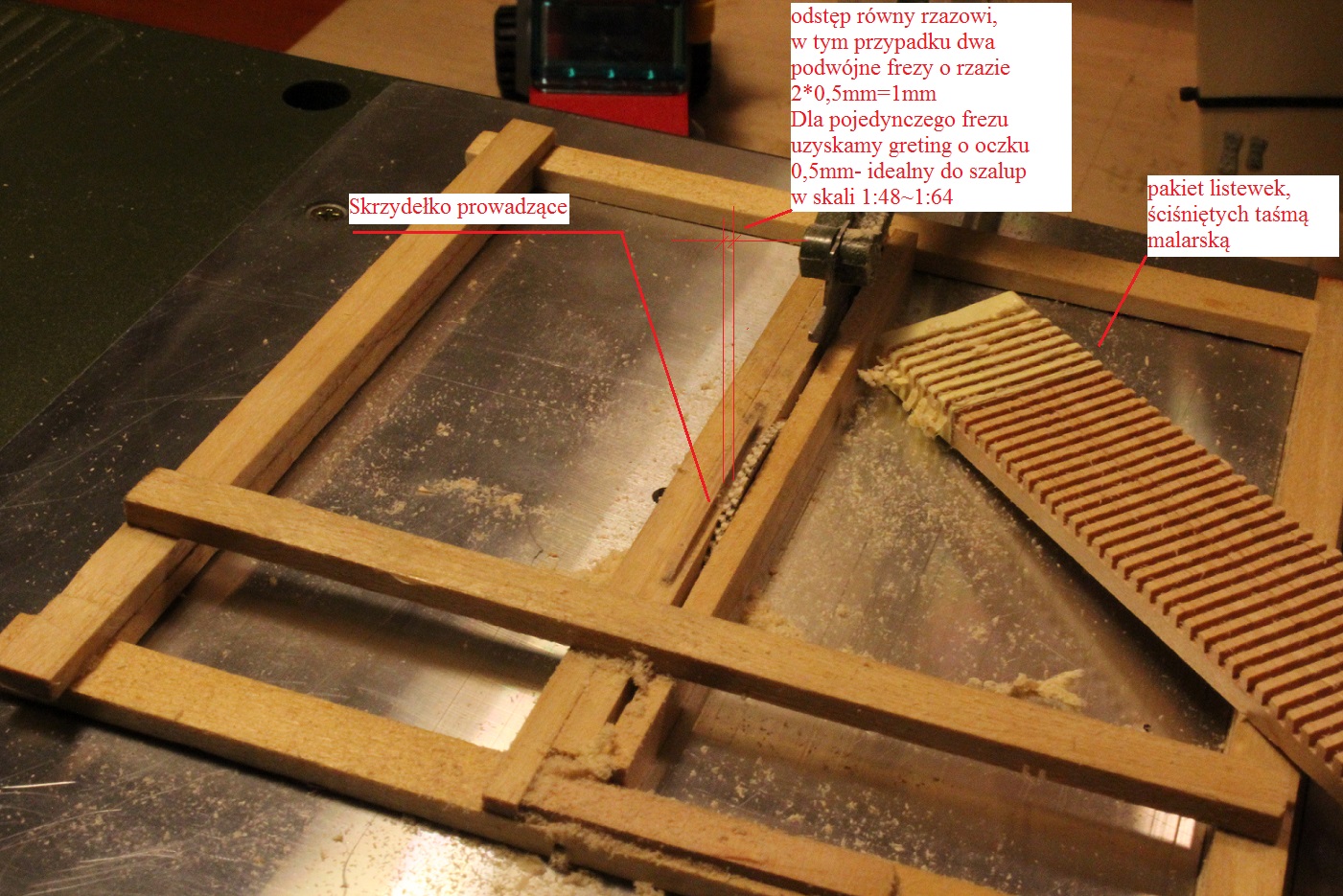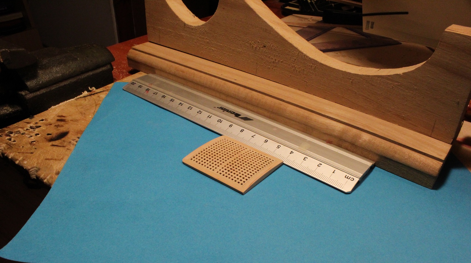 Było tak: zapomniałem jak w końcowej fazie ma wyglądać greting... przypomniałem sobie, ale i tak mam wątpliwości. Można powiedzieć, że najbliżej prawdy leży mi rozwiązanie Borka(Piotrka) Tak więc i zrobiłem. Wymiary starałem się dobrać do całkowitej wielokrotności cali. Początkowy pomysł ze szlifowaniem wyoblenia odrzuciłem, na rzec wyginania na gorąca lutownicą kolbową na "kobyłce" pokazanej gdzieś tam w zamierzchłych czasach przez Romka (RomkaS). Moja kobyłka to dwa fragmenty sztachet olchowych.