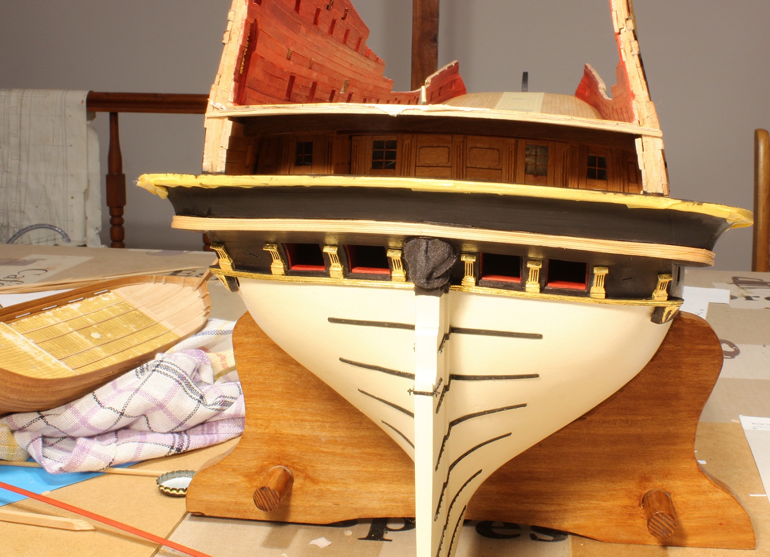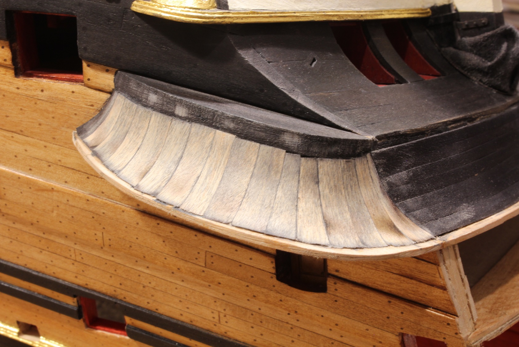 Nie wiem Piotrek, czy mi dobrze idzie ta rufa. Dziś walczyłem z babolem. W rysunkach RW mam uproszczone te atrapy "kolumn" Do takiego wniosku się dochodzi, jak się popatrzy na fotki RW stojącego w muzeum/ w muzeach. Różne modele w muzeach i różne wykonanie tego elementu.