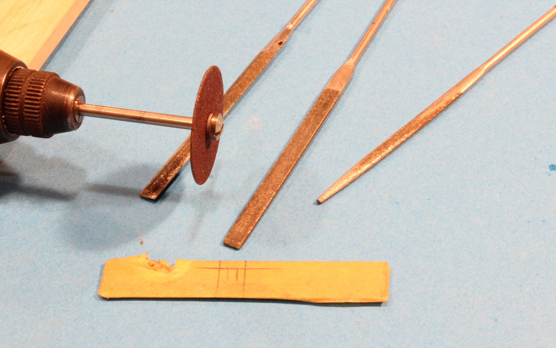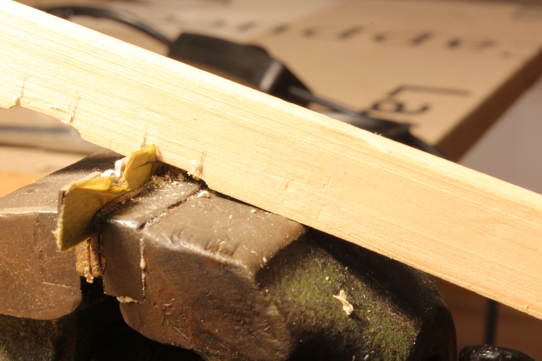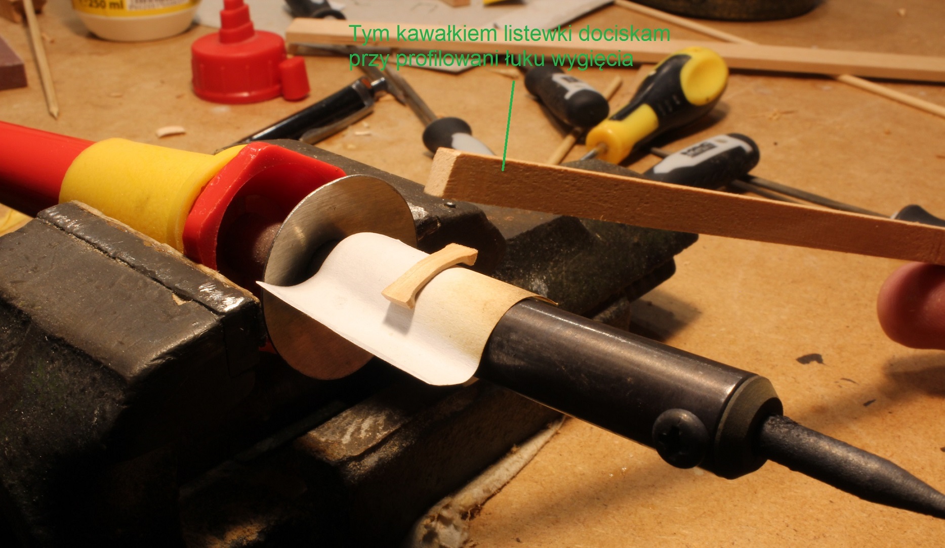 Robię frez na szerokość listwy, tak aby ścianki frezu pomagały dłoniom prowadzić listwę wzdłuż freza. Frez wypiłowuję proxxonem z tarczą ścierną oraz iglakami kupionymi w PRL-u, około 1985roku w Polkowicach w sklepie "żelaznym", octu w tym sklepie nie było;) Teraz takich iglaków nie kupi. Obecne na tej stali z ostrza struga nic nie upiłują