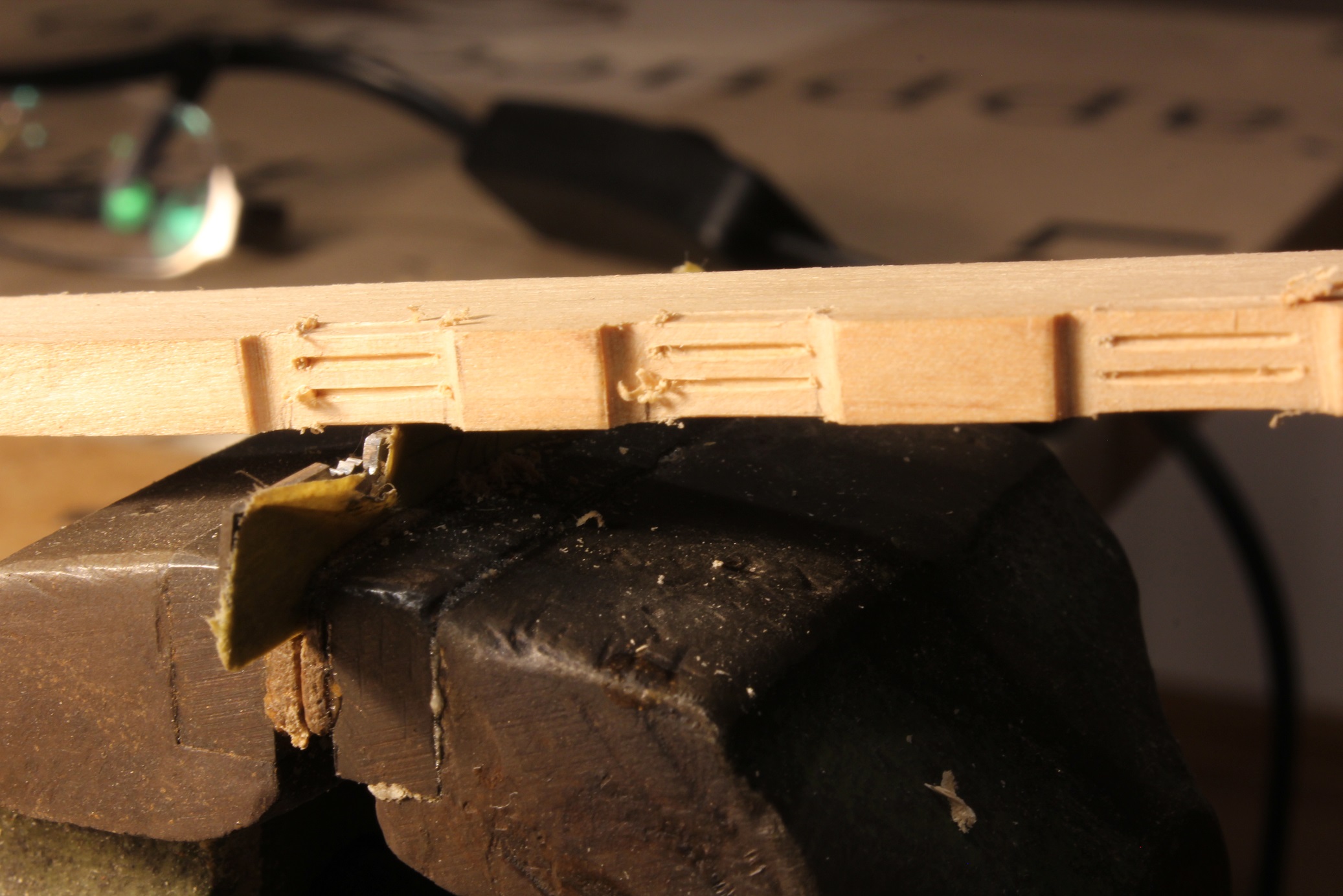 Frez zostawiłem ten sam. Trzeci "rowek" to skalpelem naciąłem ślad i iglakiem wypiłowałem