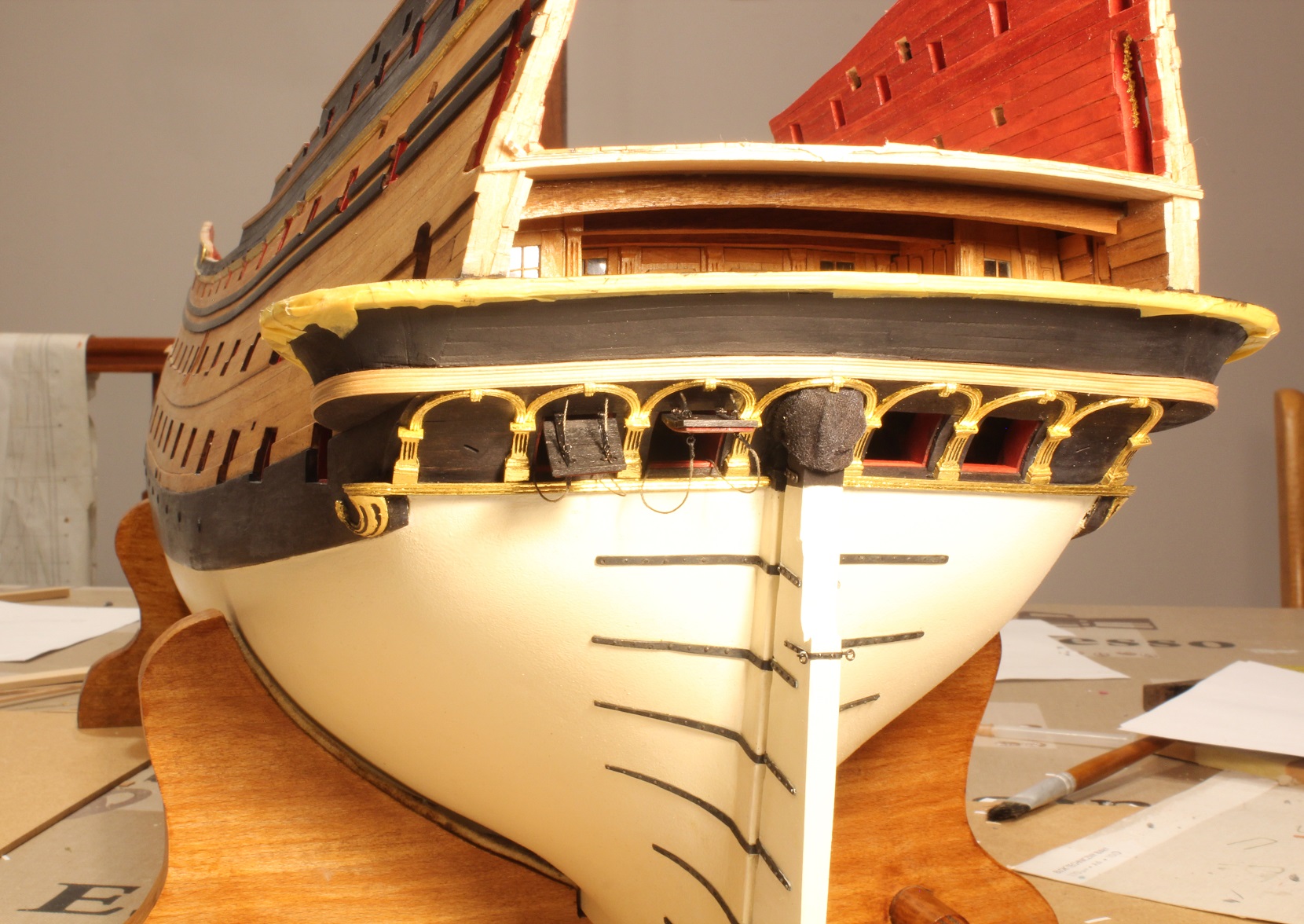 Tak z przerwami na odwiedzanie, jedzenie , popijanie przed- i świąteczne coś powoli dłubałem. Takie tam "sukiennice" na nawisie pawęży strugam.
