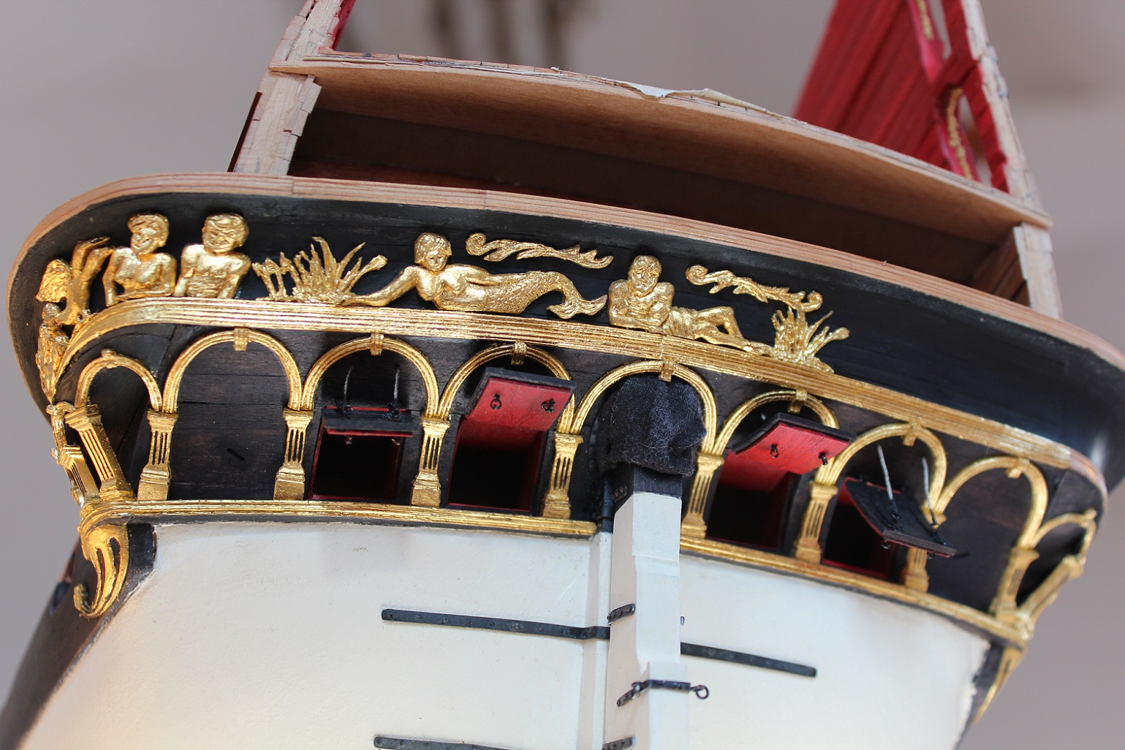Wrzucę jeszcze przymiarkę kilku elementów. Jak patrzę wstecz, to teraz żałuję, że od razu nie zabrałem się na te rzeźbienie po łukach, wymagało to tylko nieco więcej wysiłku. Czasu mi tak nie szkoda, jak tego złota co poszło na odlewy żywiczne. Jeszcze tylko trawa i gościu z gałązka plus złocenia i będę na etapie sprzed kilku tygodni