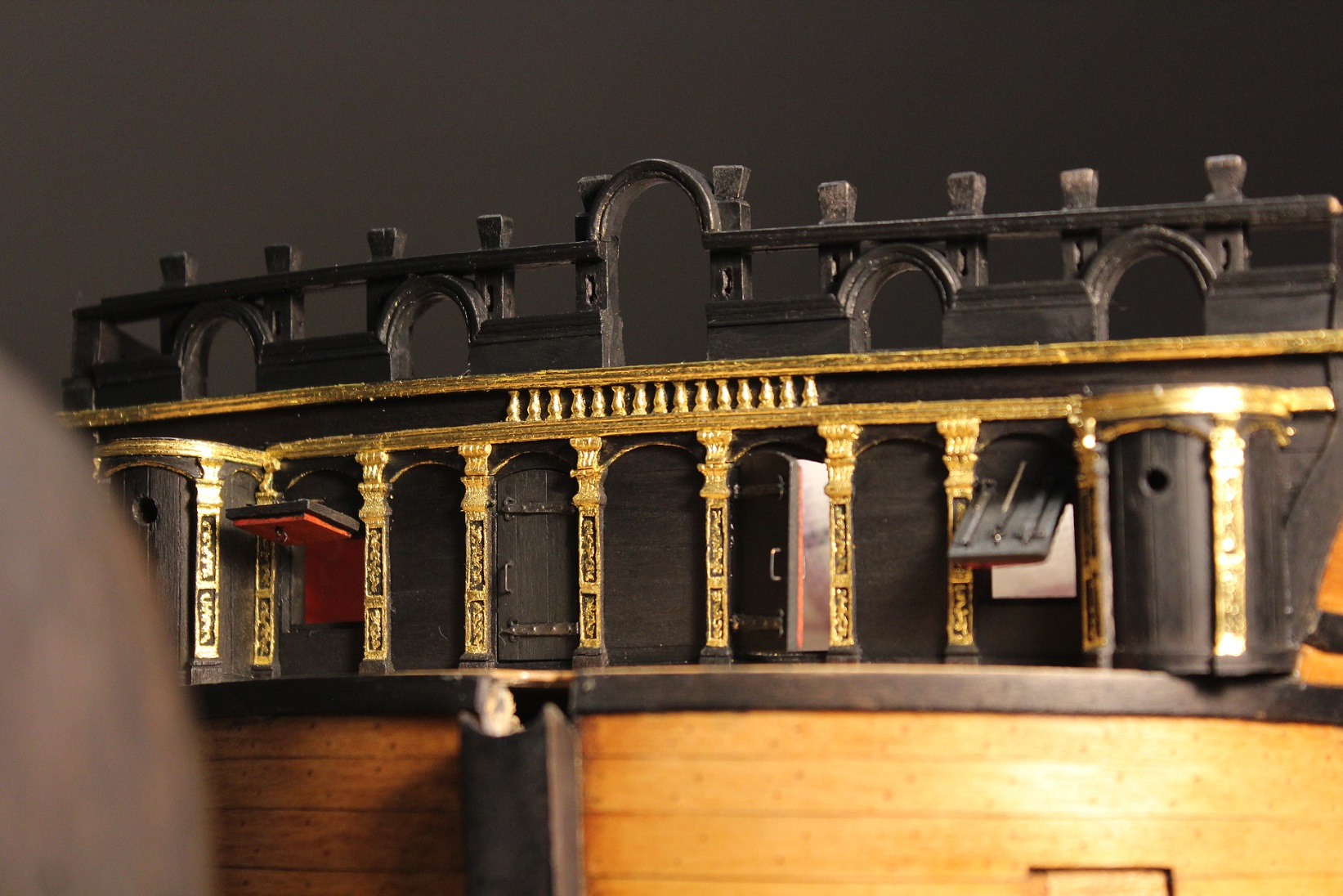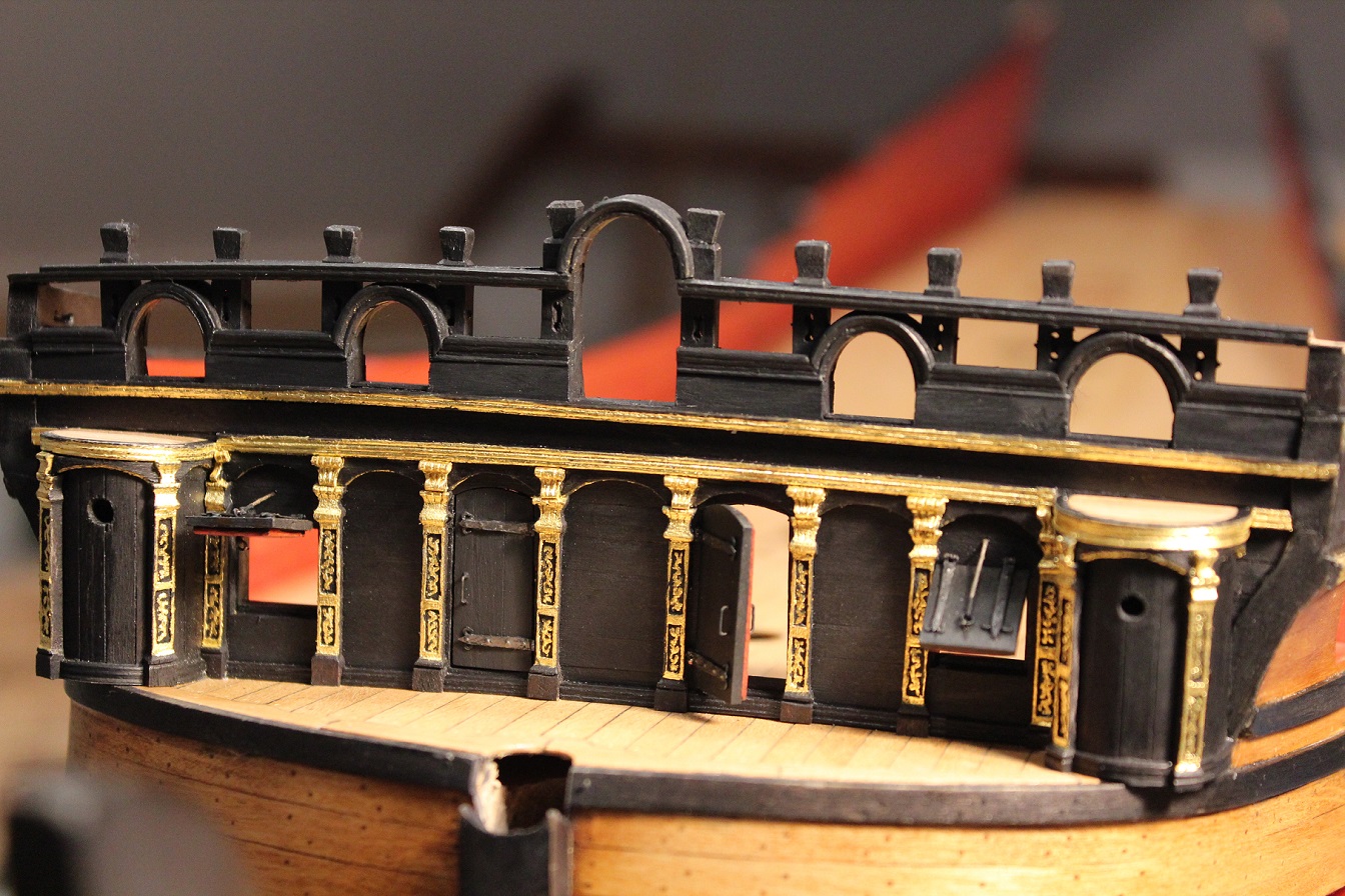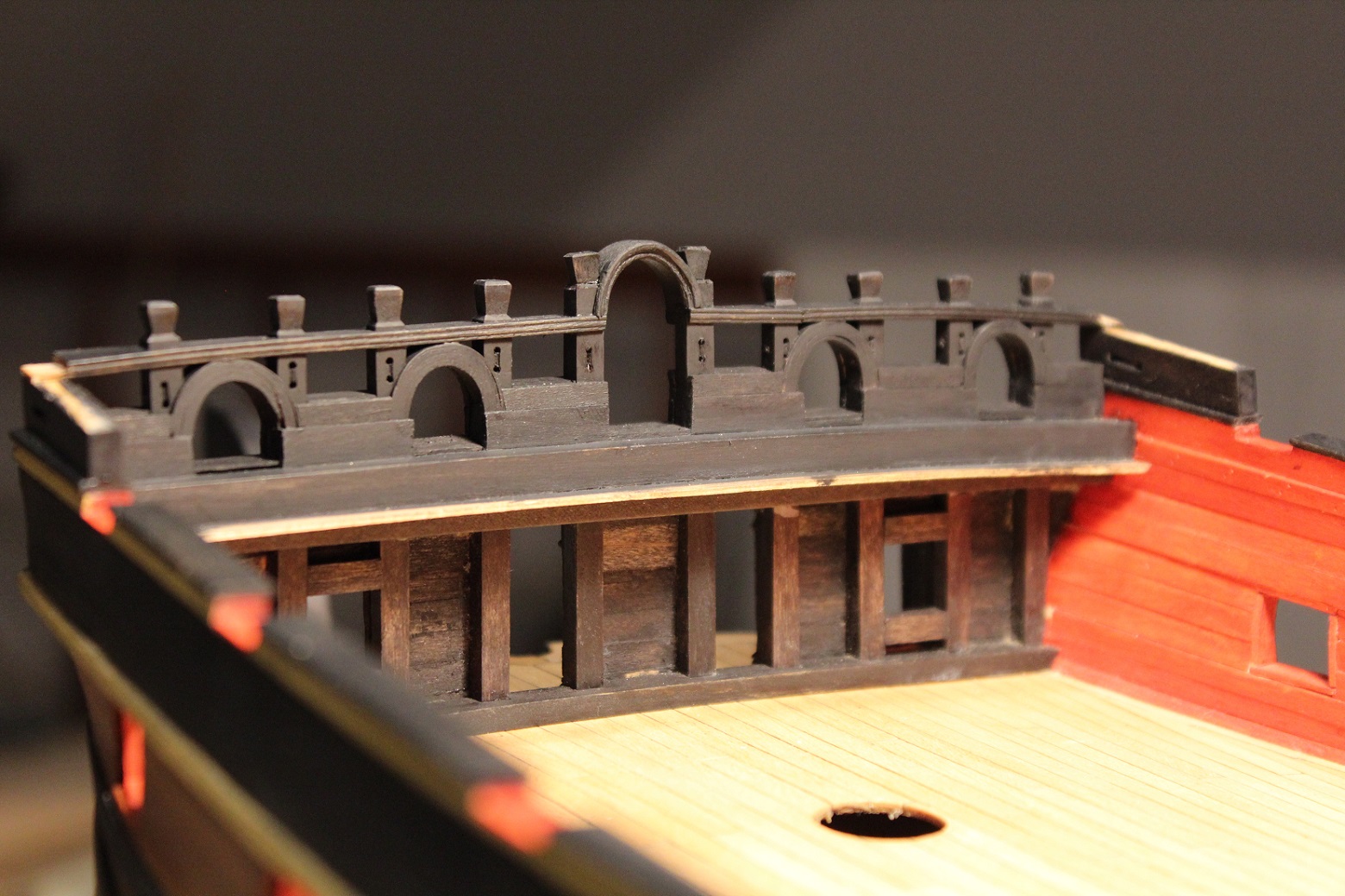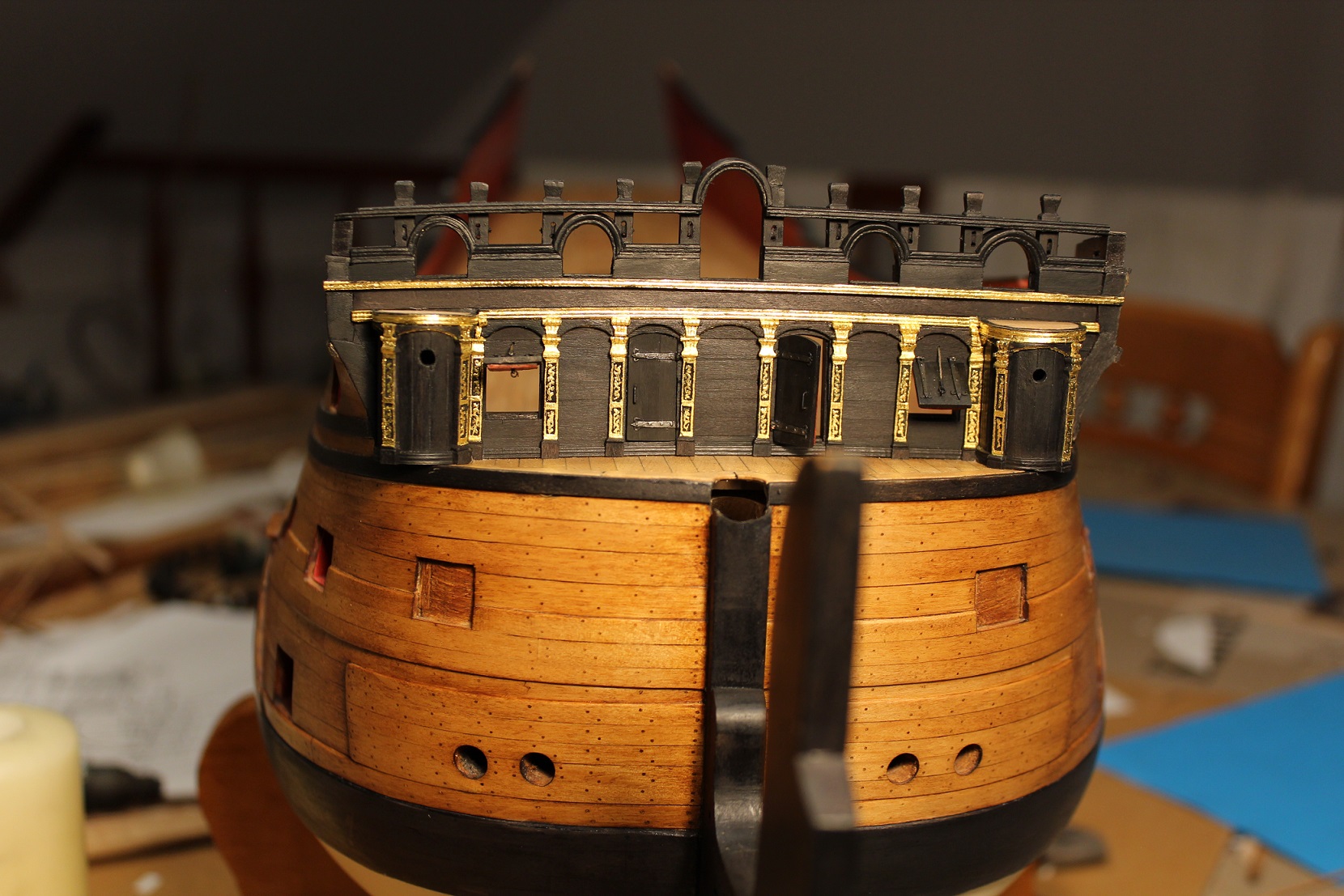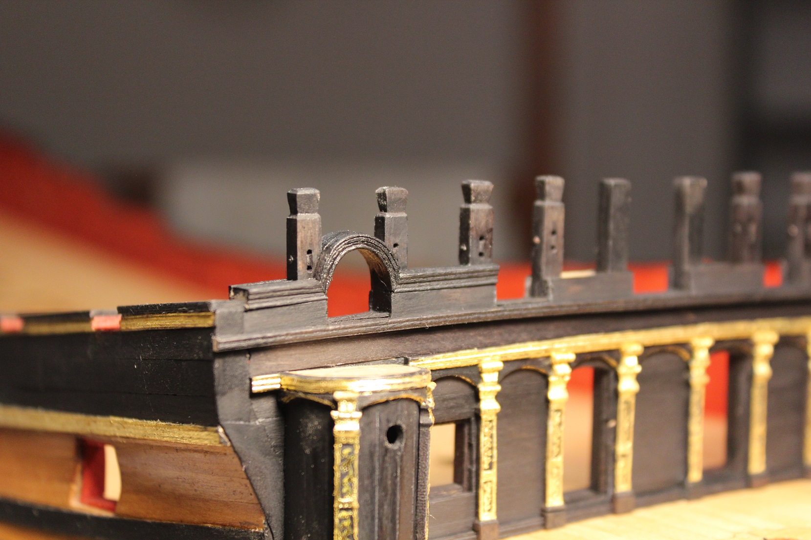 Na dziś koniec dłubaniny. Ogólna zarys kasztelu dziobowego widzianego z dziobu jest skończony. Brakuje tralek, drzwi i klap fur działowych