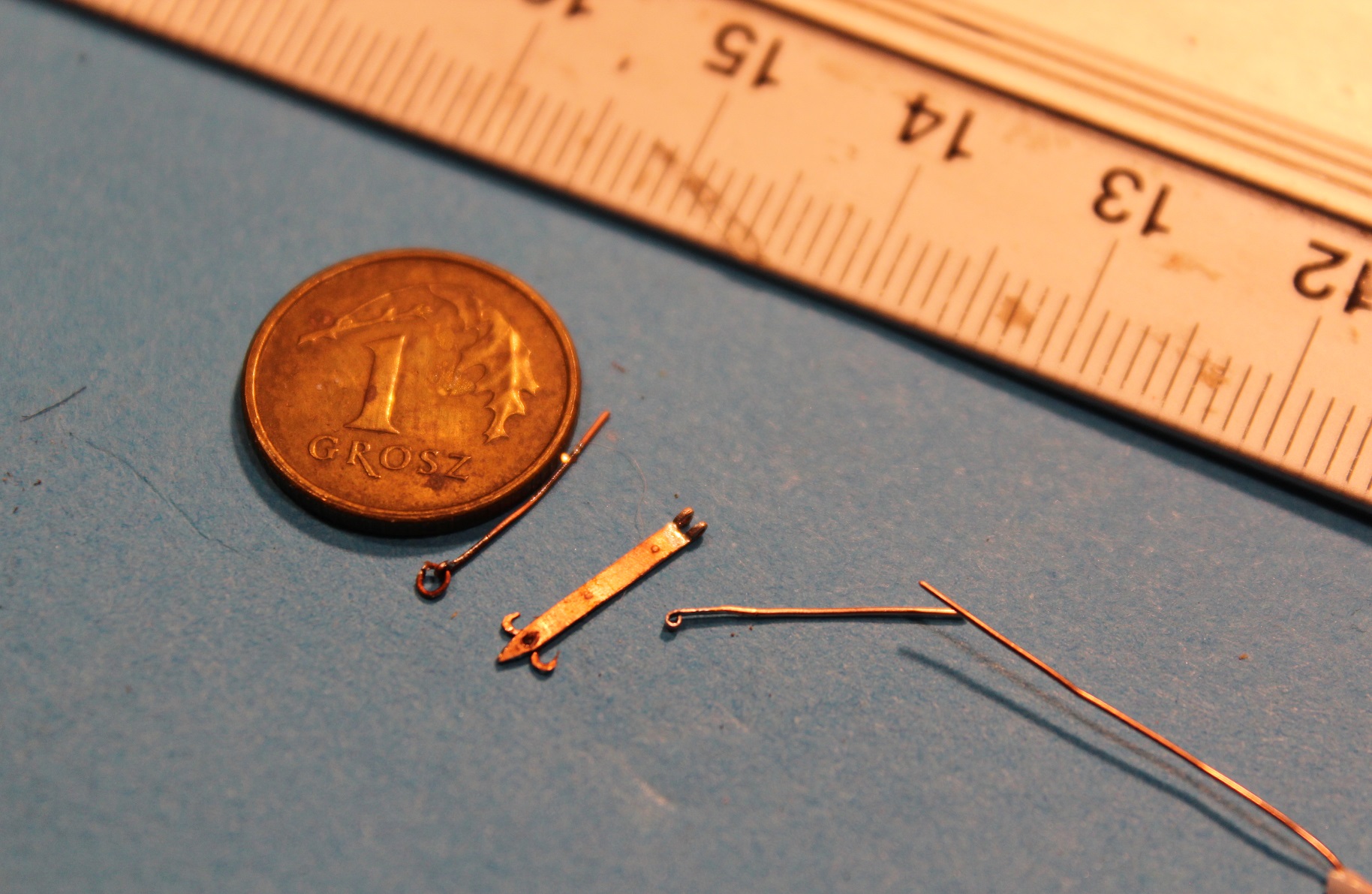 I mam zmianę technologii. Odlewy tralek są zbyt delikatne. Musiałem kilka odlewów wywalić do kosza- pękały przy usuwaniu nadlewów. W odlew musiałem wstawić zbrojenie w postaci drucika miedzianego z ekrany przewodu antenowego- fotka poniżej