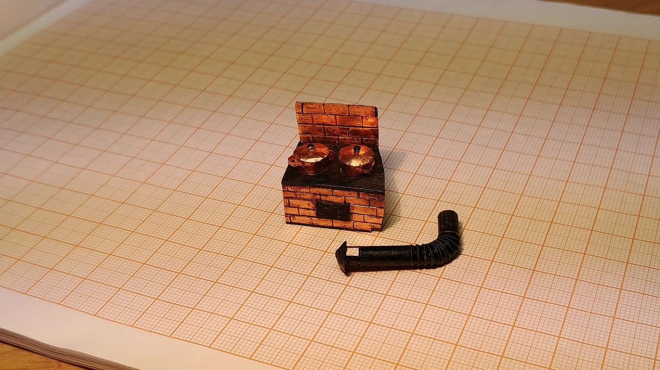 .Kuchnia i spiżarnia.Jak widać piec kuchenny oraz kociołki noszą ślady intensywnej eksploatacji.No ale wykarmić tyle luda to trzeba jechać na trzy zmiany.Worki na mąkę i kaszę są klejone a klej trzyma b.dobrze.I tym sposobem skończyłem wyposażanie wnętrza chyba,że coś jeszcze wymyślę