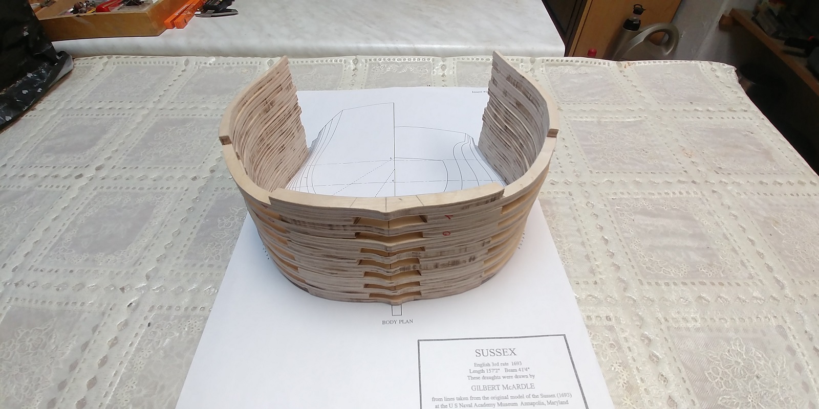 Piotrek,wbrew pozorom o wiele łatwiej będzie mi bazować na planach i skopiować każdą wręgę na sklejkę niż wymyślać nową koncepcję budowy.Będę się trzymał tych planów.Tu jest ponad 60 wręg i chodzi o ciężar.W zamyśle model ma być z omasztowaniem a nie tylko kadłub z częścią anatomiczną.Tak jak pisałem grubość tej sklejki to szerokość wręgi na planie czyli nic nie muszę kombinować.Nawet jak wyjdą jakieś nierówności na skorupie to szpachla pokryje i całość poszycie zakryje