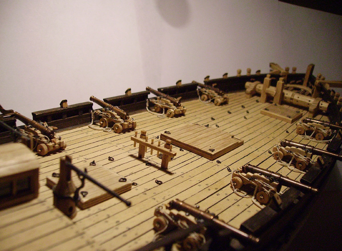 Skończyłem armaty, dodałem linki, bloczki i na pokład.