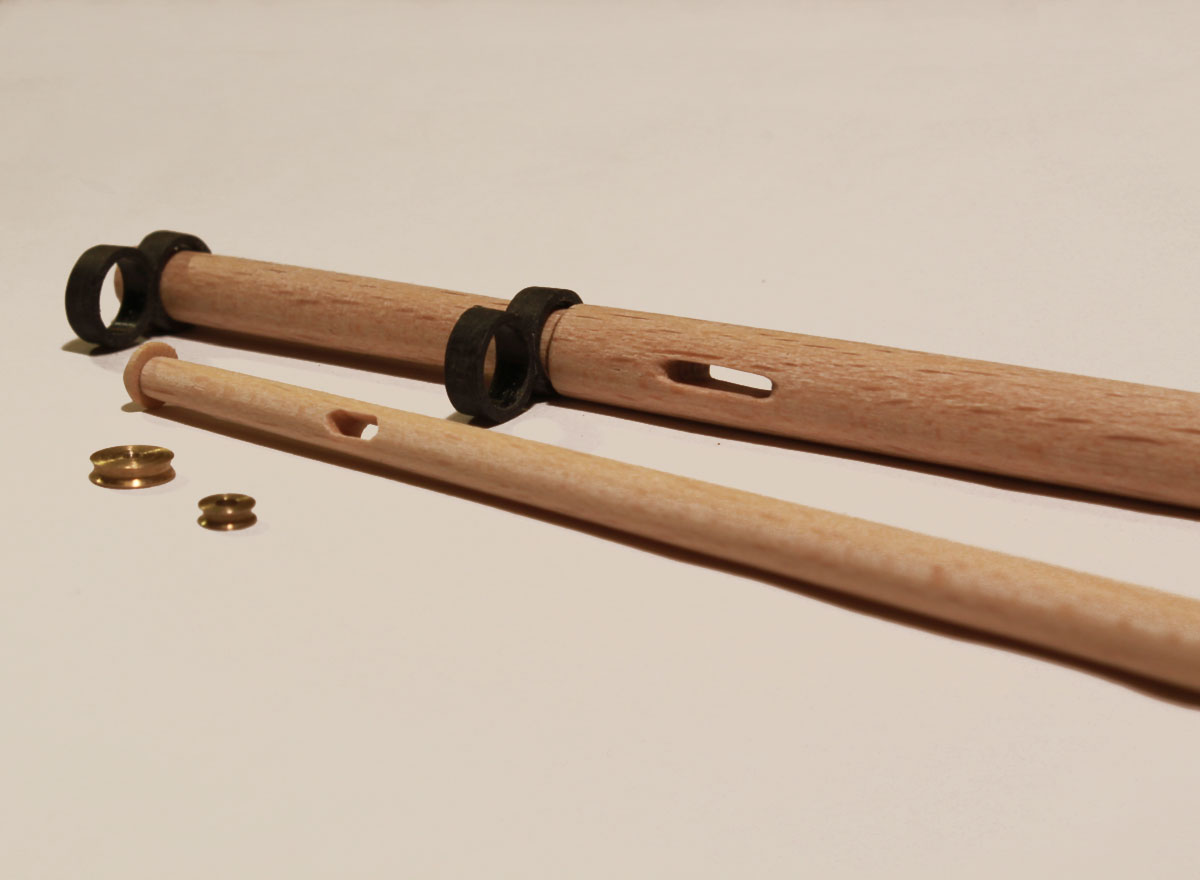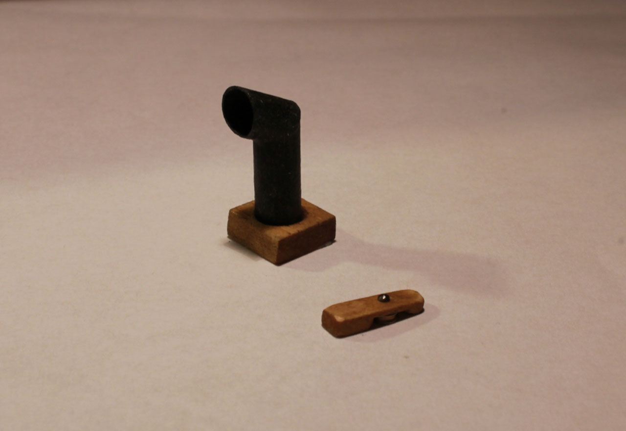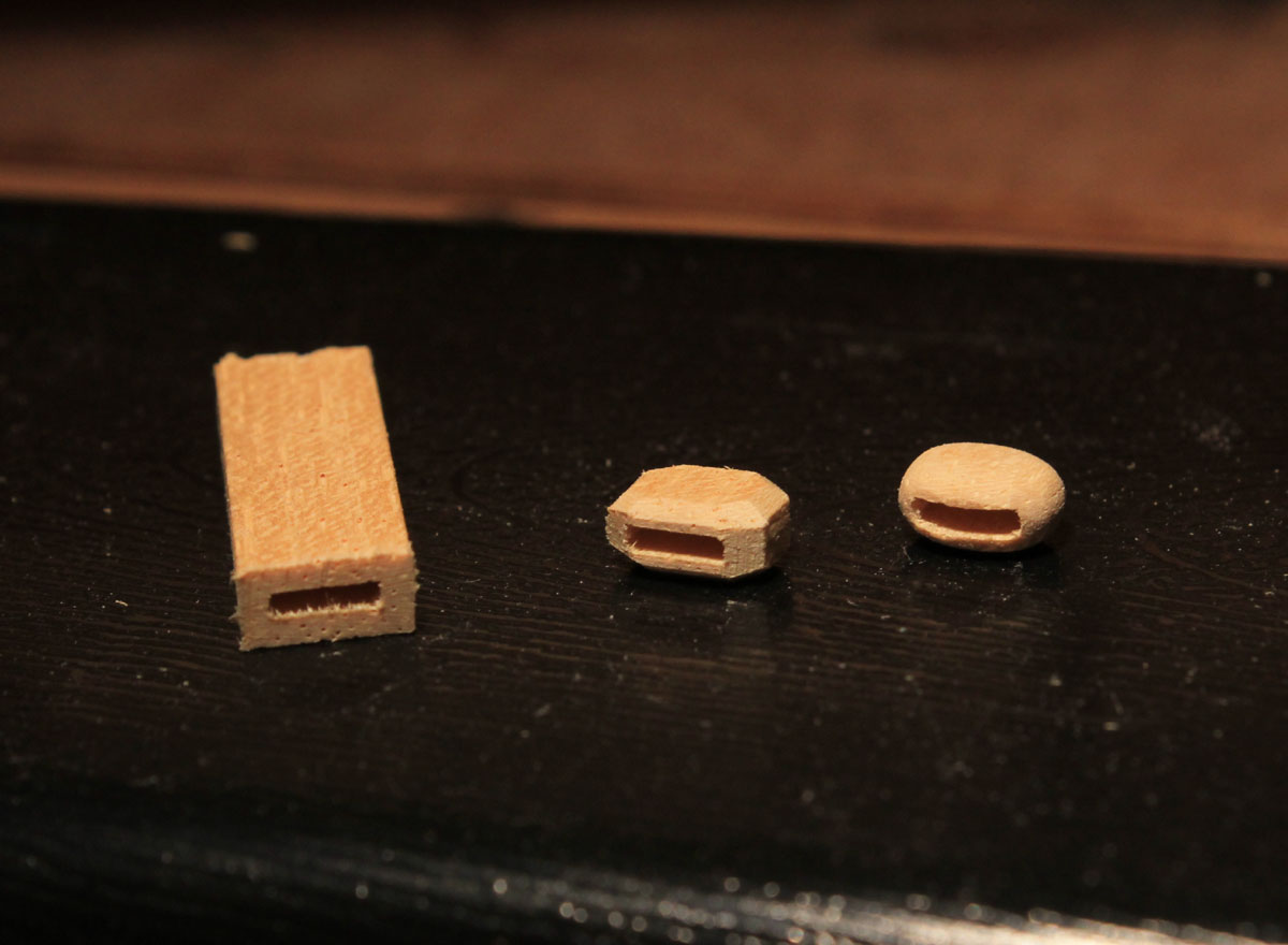 Zacząłem od bloczków, te są największe 8x6 sposób wykonania mało skomplikowany choć pracochłonny.Do środka wkleiłem krążek Ø5 imitujący rolkę.