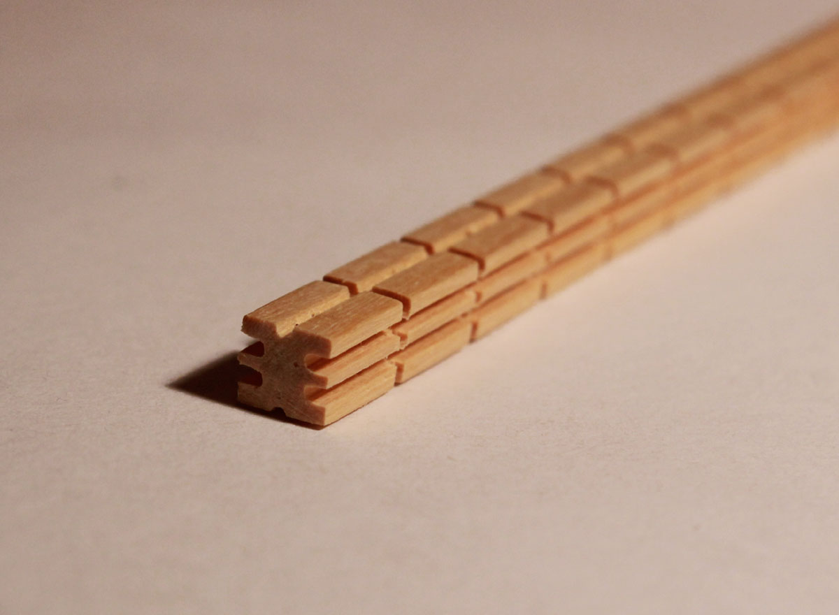 Zacząłem strugać następne bloczki 5x6mm. Materiał listewka brzozowa, kanałki frezowane na mojej samoróbce