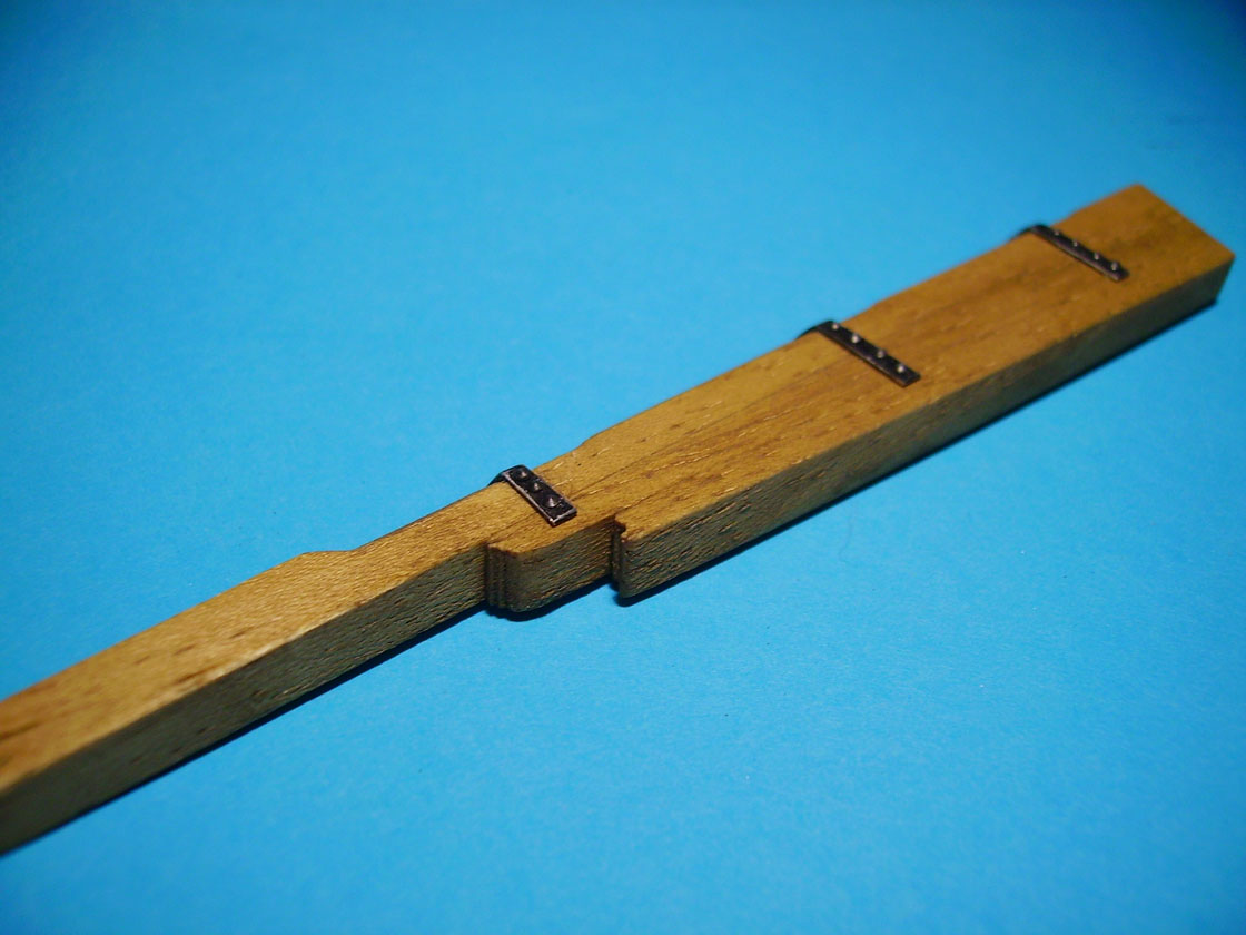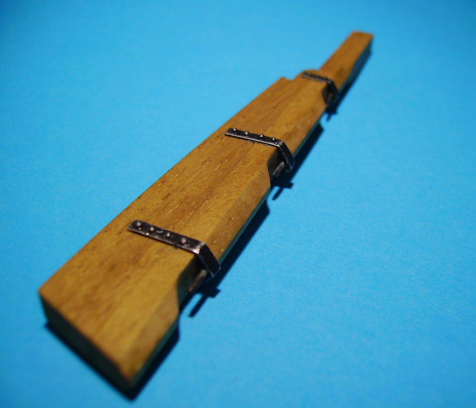 co do reszty okucia z blaszki aluminiowej 0,4mm ciąłem nożyczkami na paski 2mm potem wyginanie i wiercenie 0,5mm ,czopy ,nity czy jak im tam to drut 1,0 zatoczony na 0,5 łeb szlifowałem po odcięciu coby był nieco kulisty .Aluminium malowane czarnym matem potem trochę to przetarłem żeby było staro i nie dokładnie ,nity czernione jakimś niebieskim płynem ale nie mam pojęcia jak się nazywa wszystko razem sklejone AC ,chyba tyle :?: