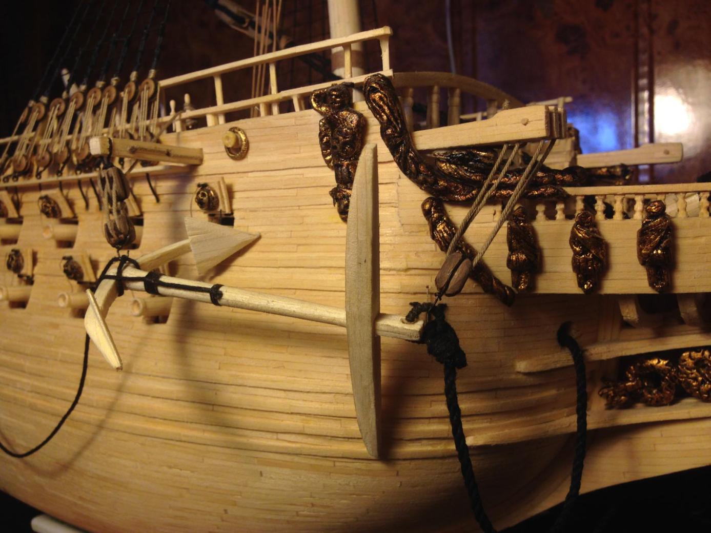 Witaj Michał. Aż trudno uwierzyć, że z zapałek można taki model stworzyć, gratulacje. A jeśli chodzi o olinowanie, to przede wszystkim musisz się postarać bardziej naciągnąć wanty. To podstawa. Same wyblinki wyglądają już nieźle, może same węzły są zbyt słabo dociśnięte. Wydaje mi się też, że widać na nich połyskujący klej CA. Osobiście używam do zabezpieczania wyblinek rzadkiego "wikolu". Poza tym gratuluję inwencji i życzę powodzenia w dalszej pracy ;) . Pozdrawiam Wojtek.