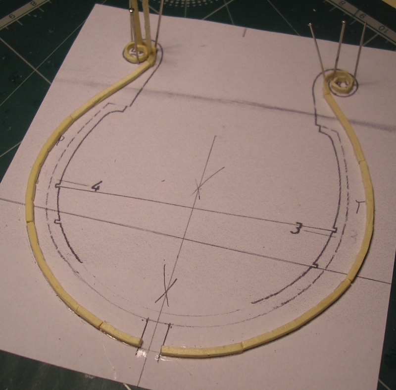 Mam wątpliwości, czy sklejoną z zapałek deskę da radę uformować do właściwego kształtu (już druga i kolejne od kilu, będzie wymagała skrętu o ok. 90° w części dziobowej i rufowej).