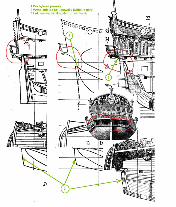 Co do rysunków bo nie napisałem o co mi dokładnie chodzi. Na rysunkach widać linię burty i w miejscu gdzie są furty jest taki łuk, ale co ten łuk oddaje czy jest to kształt rufy w tym miejscu czy wsporników pod balkonami. Jeśli wsporników to czy furty działowe są w takich wnękach pod balkonem pomiędzy wspornikami i nie są wygięte w ten łuk tylko bardziej prosto.