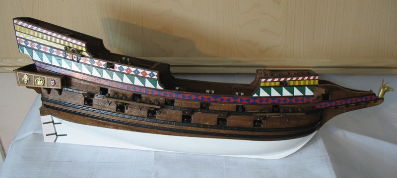 wiec zamontowałem armaty drewniane toczone a nie metalowe. Kadłub gotowy mozna stawiać maszty.
