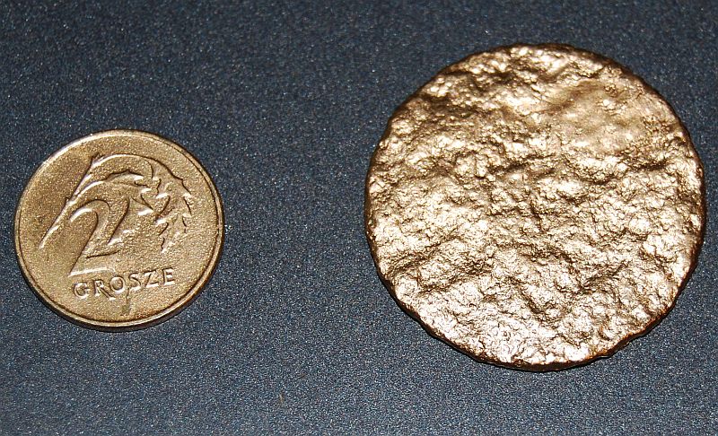 Szkielet na sucho po oczyszczeniu i przeszczepach. Zabawy ze złotem i patyną antyczną. Próbnie malowałem monetę 2gr bez odtłuszczenia aby zobaczyć co zrobi się z obrazkiem monety i jakiś znaleziony na ulicy metalowy krążek. O dziwo nic nie schodzi ani się nie złuszcza. Mam zamiar pomalować tym wszystkie rzeźbienia aby uniknąć oksydowania elementów na kolor zielony. Dziobnica jest z tego samego materiału co reszta kadłuba tyle że leżała w kartonie.Widać co UV robi z drewnem.