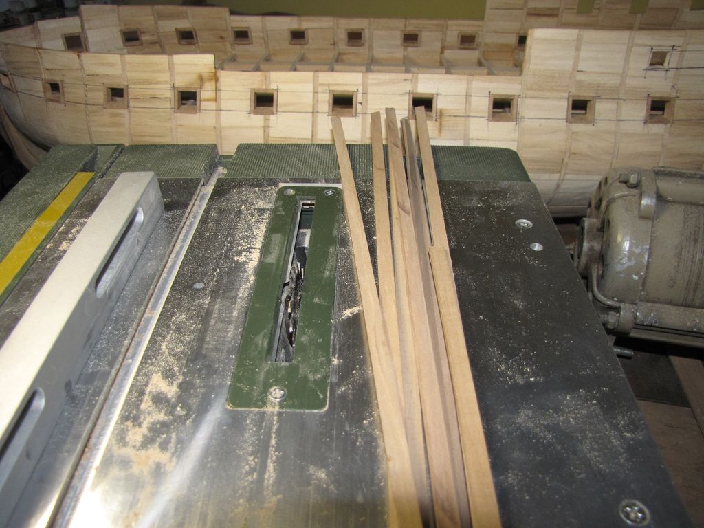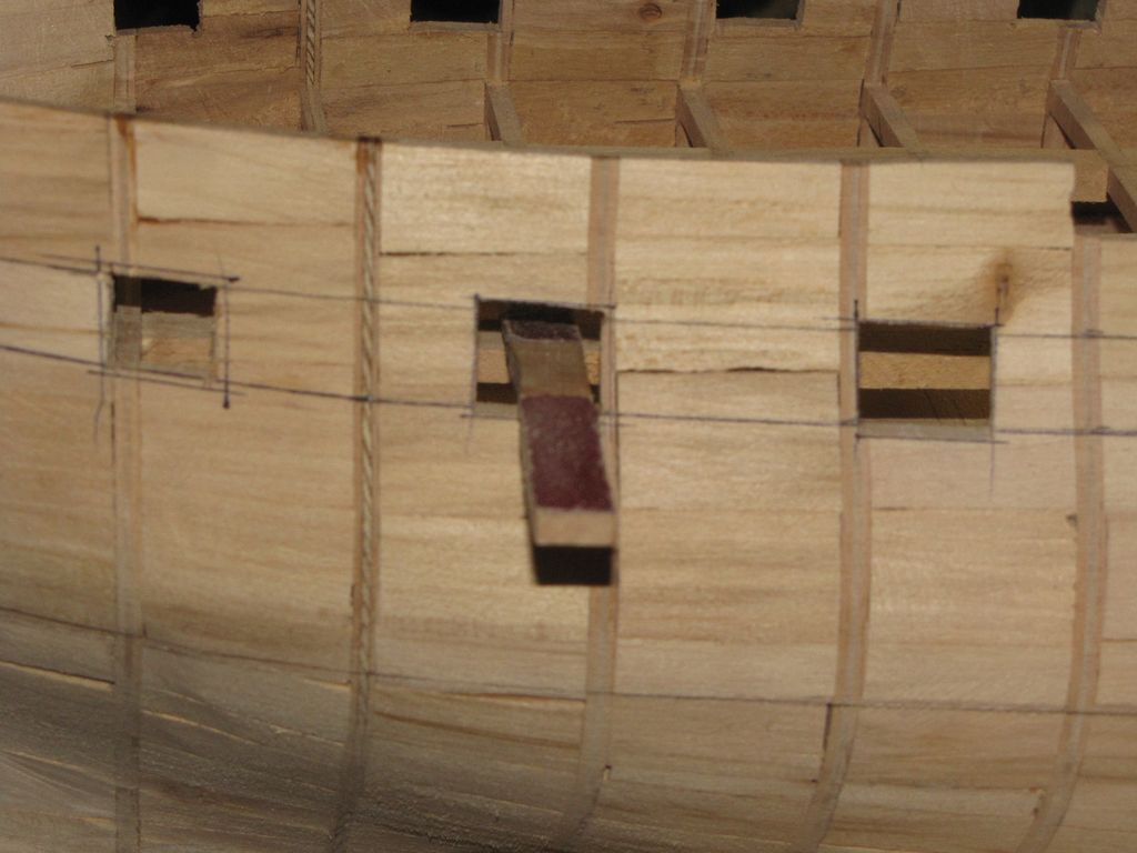 Zaczynam poszywanie wewnętrzne burt, materiał to oczywiście grusza, listewki 6X2mm. Jak widać na poniższych obrazkach, listewki układają sie bardzo ładnie, chciało by się powiedzieć same :) a to za sprawą wypełnienia między wręgami. Ktoś, komuś, kiedyś zarzucił że wypełnianie przestrzeni między wręgami jest zbędne, tak może powiedzieć tylko ktoś, kto nie potrafi sześcianu z papieru skleić :twisted: