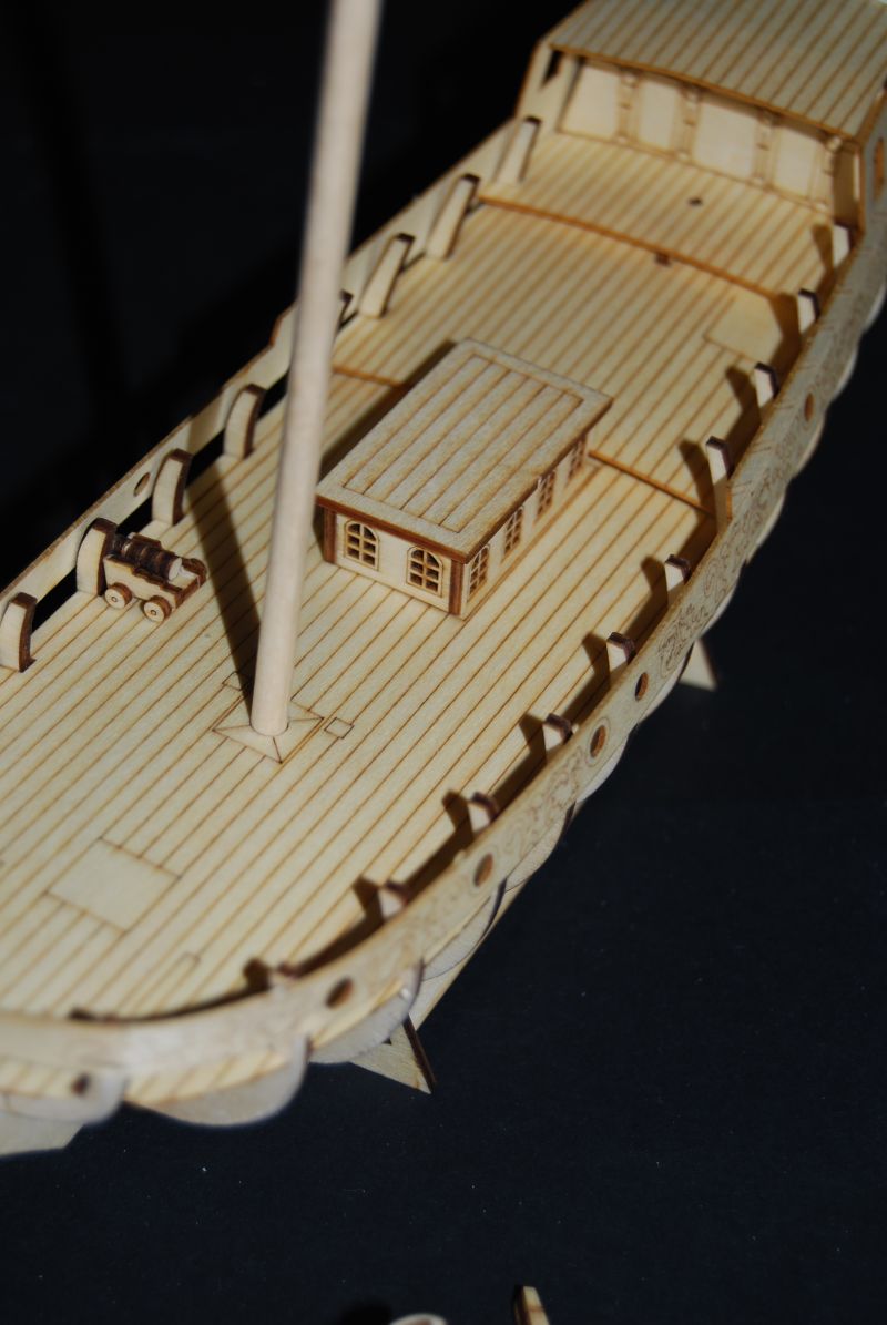 Jak komuś się nie podoba taka przypalona krawędź to sobie może szlifnąć krawędzie papierkiem ściernym. Jaki to problem ??? Model ma mieć walor edukacyjny i pokazać z czym się w ogóle je modelarstwo szkutnicze. Ma propagować nasze hobby. Tę funkcję akurat spełnia. Co do kolorystycznego wykończenia to zależy to przecież od modelarza. Akurat ta sztuka już idzie do mojego znajomego w takiej a nie innej kolorystyce bo jemu się taki podoba. Następne 2 będą w kolorystyce historycznej i troszkę podrasowane w detale.