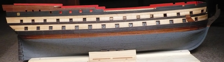 Dodatkowo przygotowuję 4 karonady (dokupione elementy Amati) - metalowe podstawy będą pomalowane na czerwono - górna pod samą karonadą już z drewna. Stan zaawansowania prac na zdjęciach.