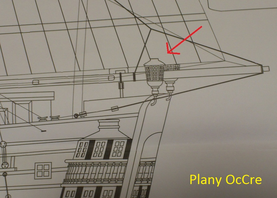 Nie ma trzeciej lampy na środku więc jest miejsce dla bomu pomiędzy dwoma. Nie wiem czy jest to prawidłowe ale musisz wiedzieć, że nok bomu jak i pieta bomu są podnoszone. Jeżeli istniała potrzeba wychylenia bomu poza latarnie, to zapewne był podnoszony do góry. Pozatym po ustaleniu położenia bomu i wybraniu sterżagla, bom był unieruchamiany na boki. Wiec nie majtał się swobodnie i nie zagrażał latarniom. Takie jest moje zdanie ale inni koledzy bardziej biegli w tym temacie niech się też wypowiedzą zanim dokonasz zmian.