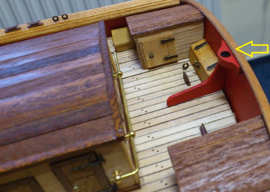 Nawet, jeżeli były trzy latarnie na rufie okrętu, to podczas pływania nigdy bom nie był ustawiony w osi symetrii okrętu. Jedyny przypadek, w którym bywał to podczas postoju. Taki okręt nie zmieniał halsu, co kilkanaście minut, lecz płynął jednym kursem dłuższy czas. Wiec przy zmianie halsu nok bomu mógł być unoszony bez problemu. Tak przynajmniej ja uważam. Ty budujesz model i wykonasz go jak będziesz uważał. Ja tylko ustosunkowałem się do Twoich wątpliwości. A może te latarnie były ruchome i przy zwrocie były w jakiś sposób kładzione?