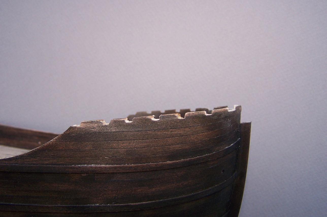 .Ja zrobiłem pomosty podparte kolumienkami i na 99,9% moja wersja jest prawidłowa.Długo gapiłem się w plany i nie widzę tam sciany tylko kolumienki.Jeżeli ktoś będzie zainteresowany to wstawię zdjęcie tego fragmentu planu i sam oceni.Według mnie muzealny modelarz zrobił babola albo tak mu było wygodniej