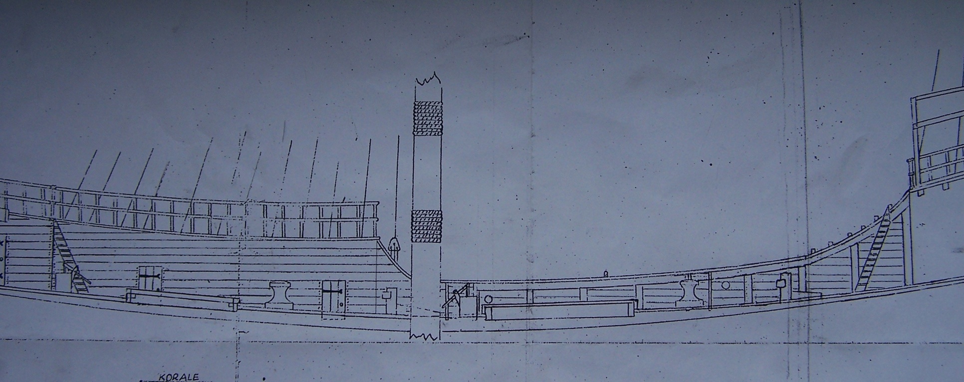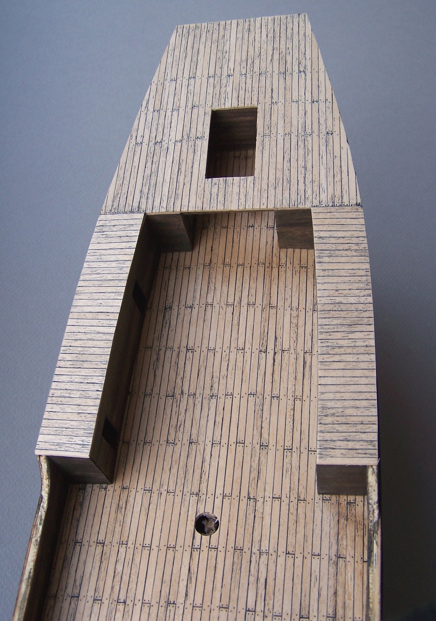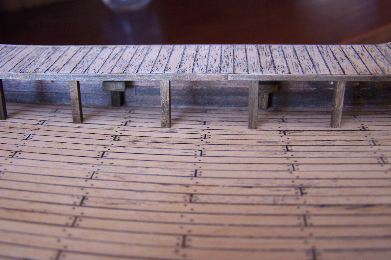 Cześć.Ostatnio miałem więcej obowiązków na głowie to prace trochę zwolniły.Przybyły pomosty wzdłuż burt.I tu zasadnicza różnica między moim modelem a tym z CMM.Model z muzeum ma zabudowane pomieszczenia wzdłóż całej burty.Takie niby tunele