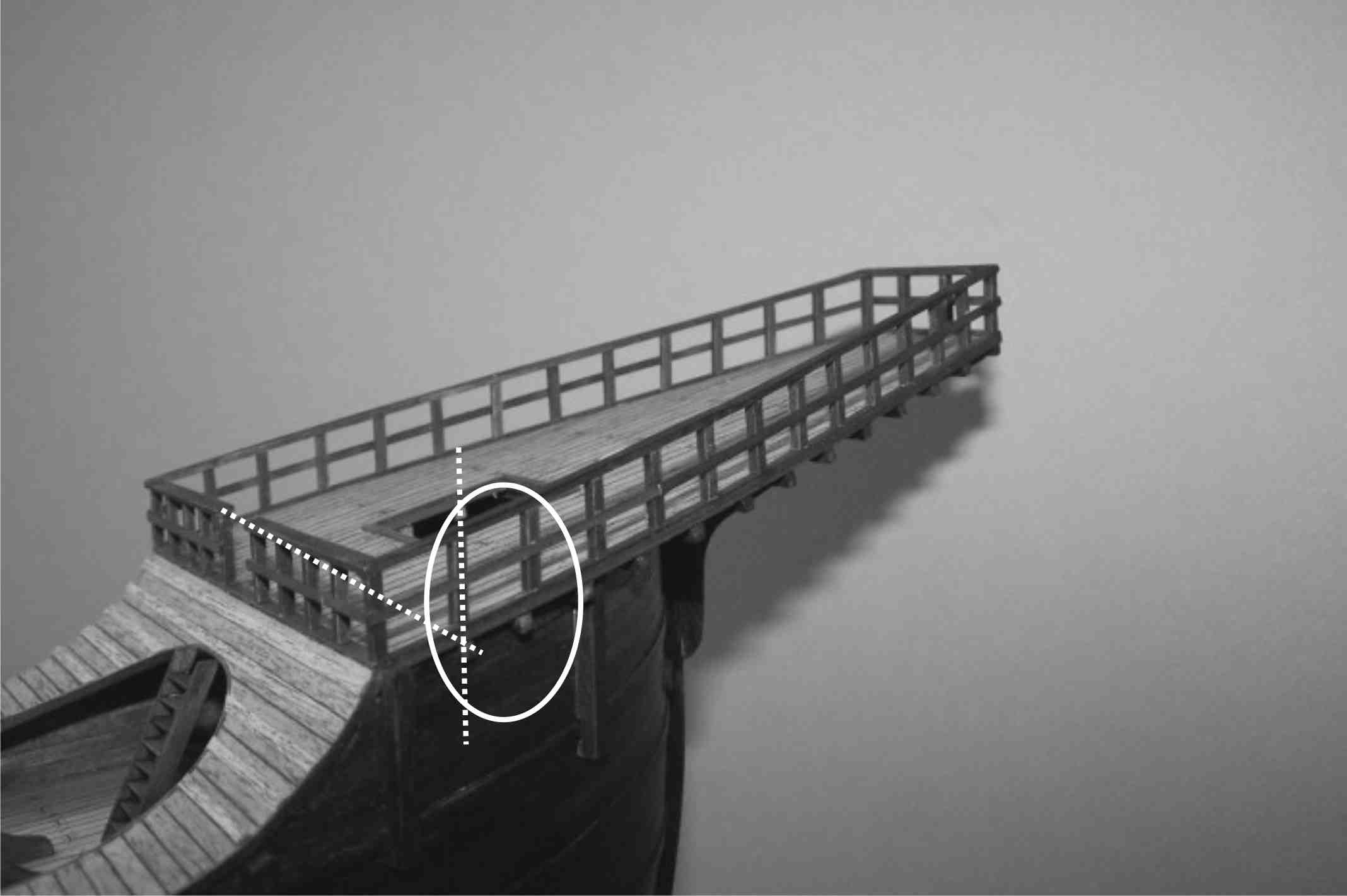 Czy osie słupków barierek nie powinny być w osiach belek podpierających kasztel dziobowy?