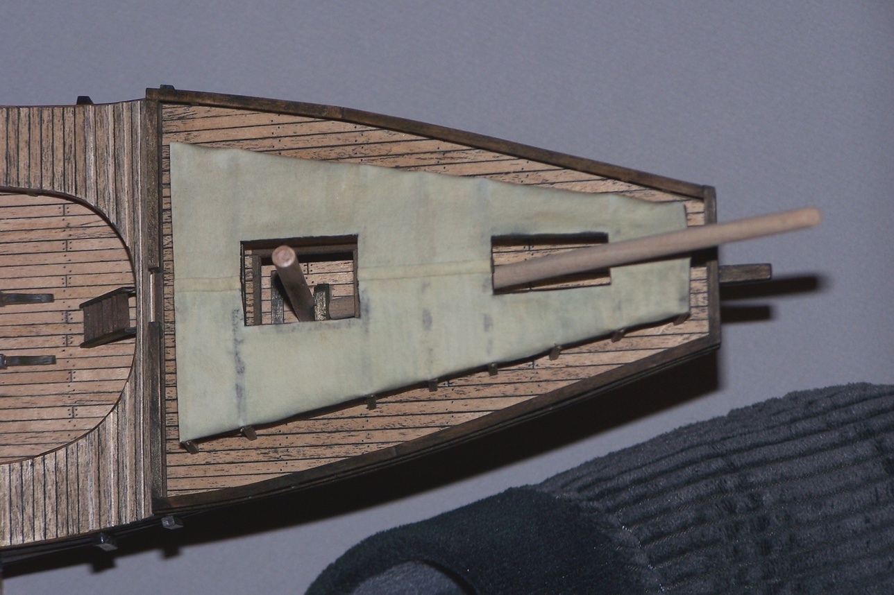 Chyba jakieś zacieki na płótnie zrobisz.Kadłub wysłużony a daszek jak ze szwalni.Okręt nabiera charakteru.R