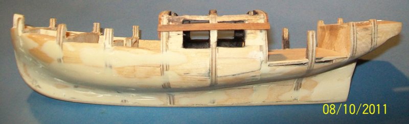 Masz wykonane wypełnienie między wręgowe. Czy planowane wykonanie dodatkowego poszycia z olchy to nie przesada? Na tak przygotowanym kadłubie ja bym kładł od razu docelowe poszycie.
