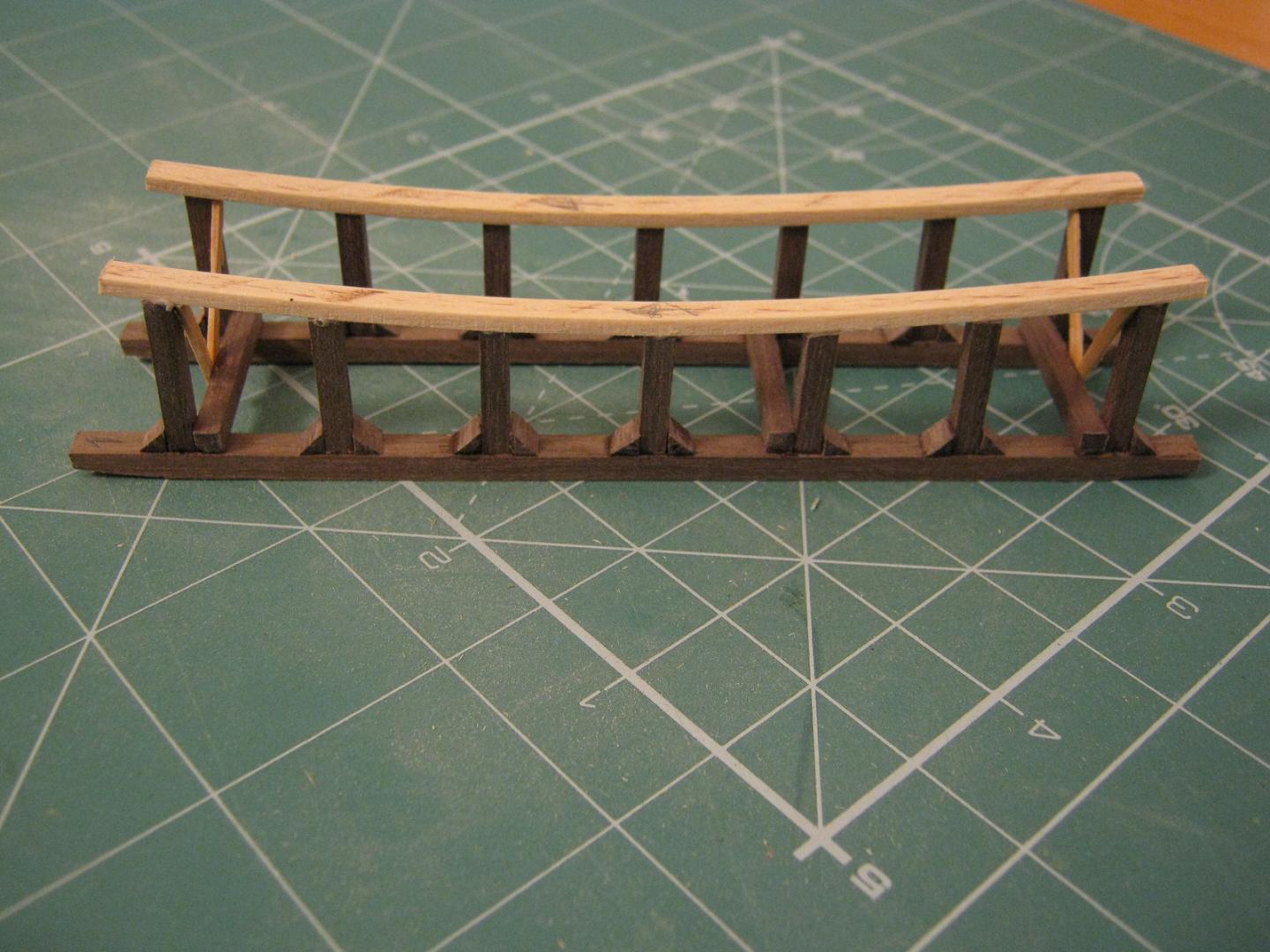 Producent założył że deski pokładu mają mieć 3mm (w rzeczywistości miały by ok 60cm szerokości). Zrobiłem z forniru bukowego 1,5mm deseczki a brzegi porysowałem ołówkiem.