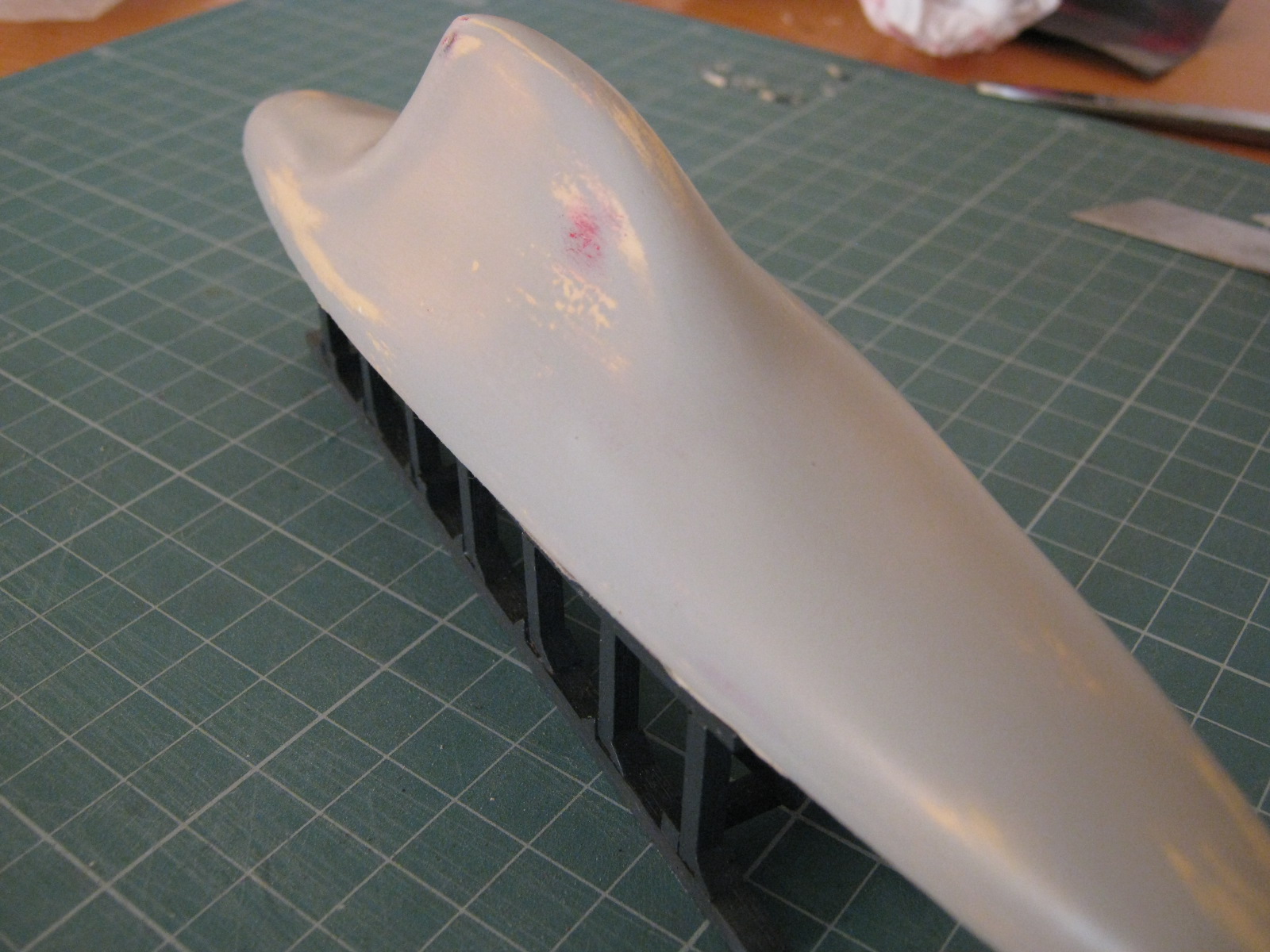 Za poradą jednego z kolegów pomalowałem kadłub na zapodkładowane tylko drewno. Wyszło jak jakiś wytwór niepełnosprawnego czterolatka na kółku plastycznym w MOPSie.