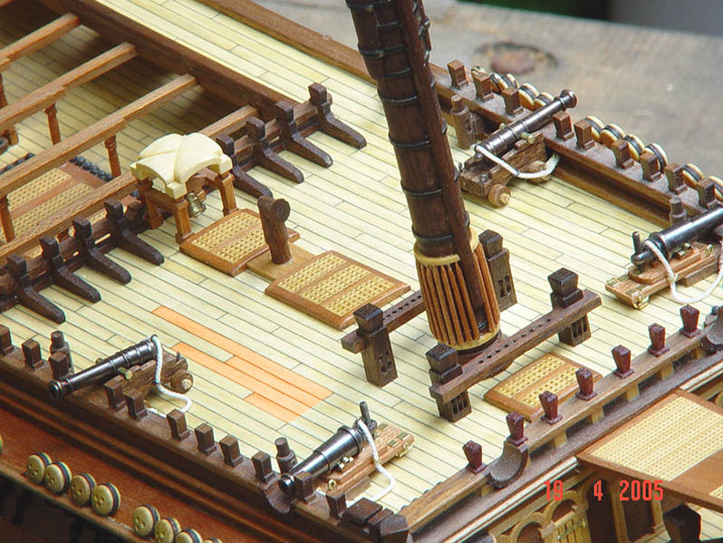 Na Quarter Deck układ gwoździowania jest podobny jak na Forecastle, z tą różnicą, że przy falszburtach występuje podwójne kołkowanie (pod lawetami) circa 6 desek +,-; czy jest na całej długości, to już trzeba pytać fachowców.