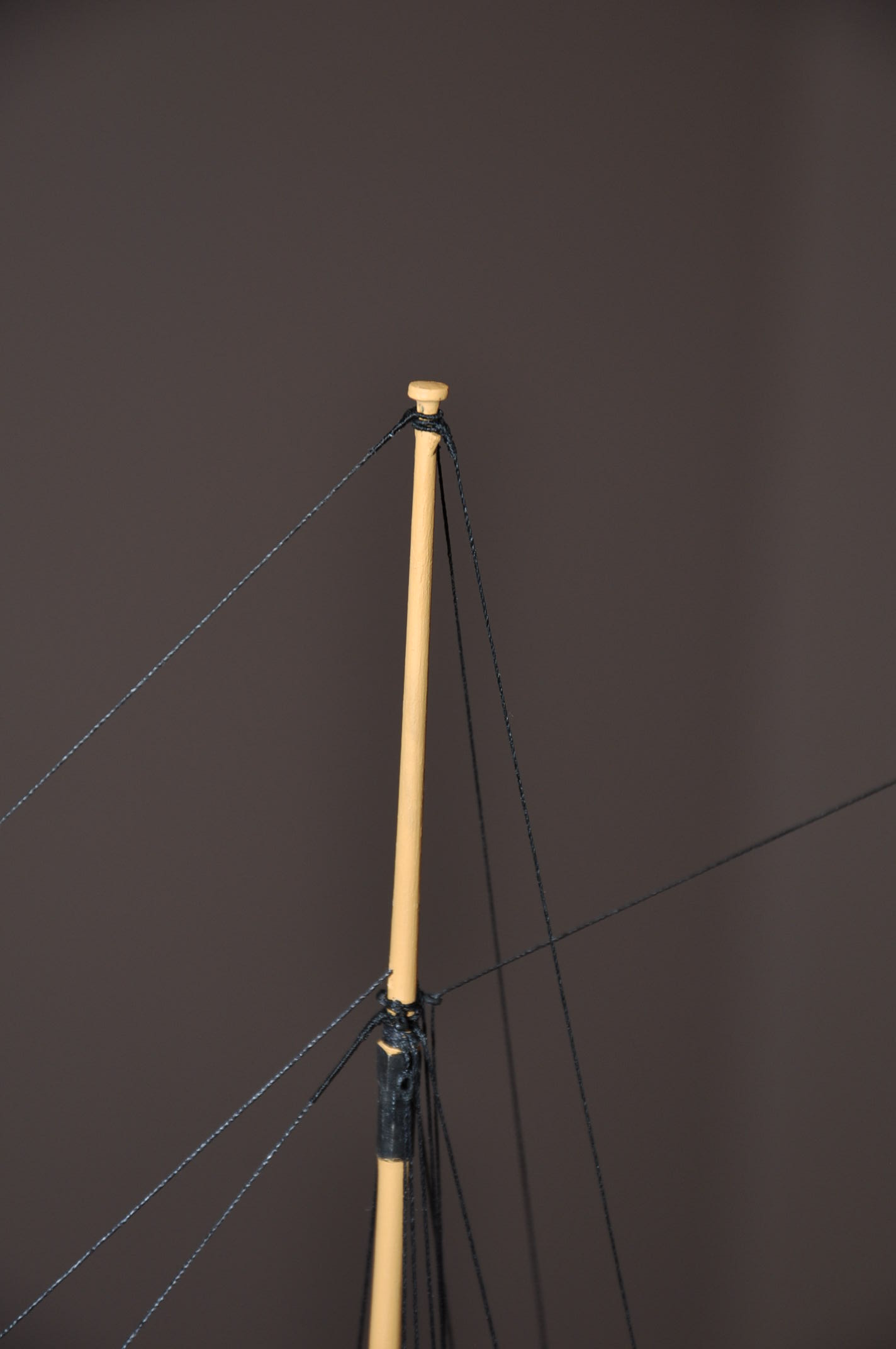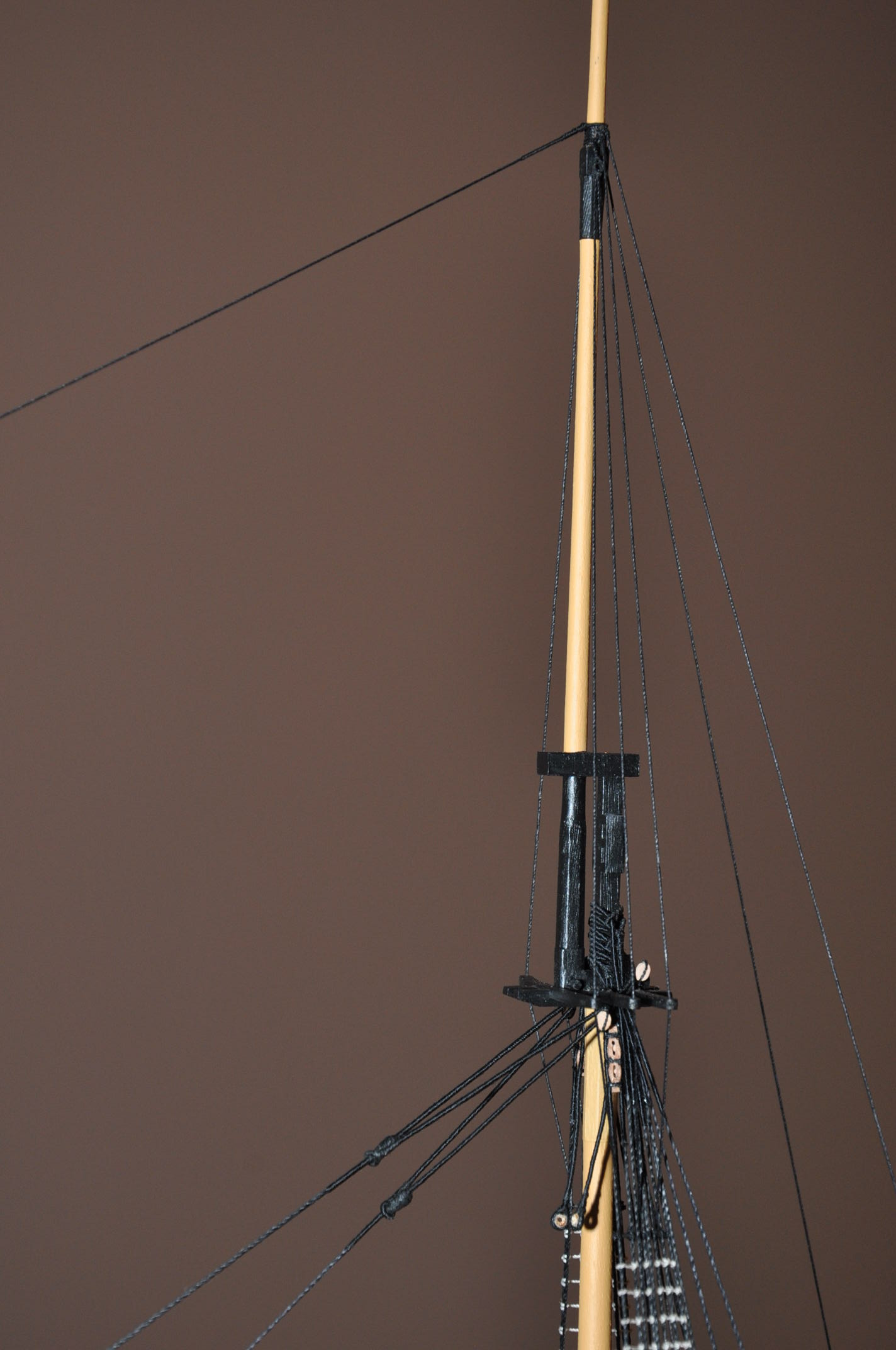 Bramstenwanty oraz fokstensztag i pomocniczy fokstensztag zawieszone na modelu .