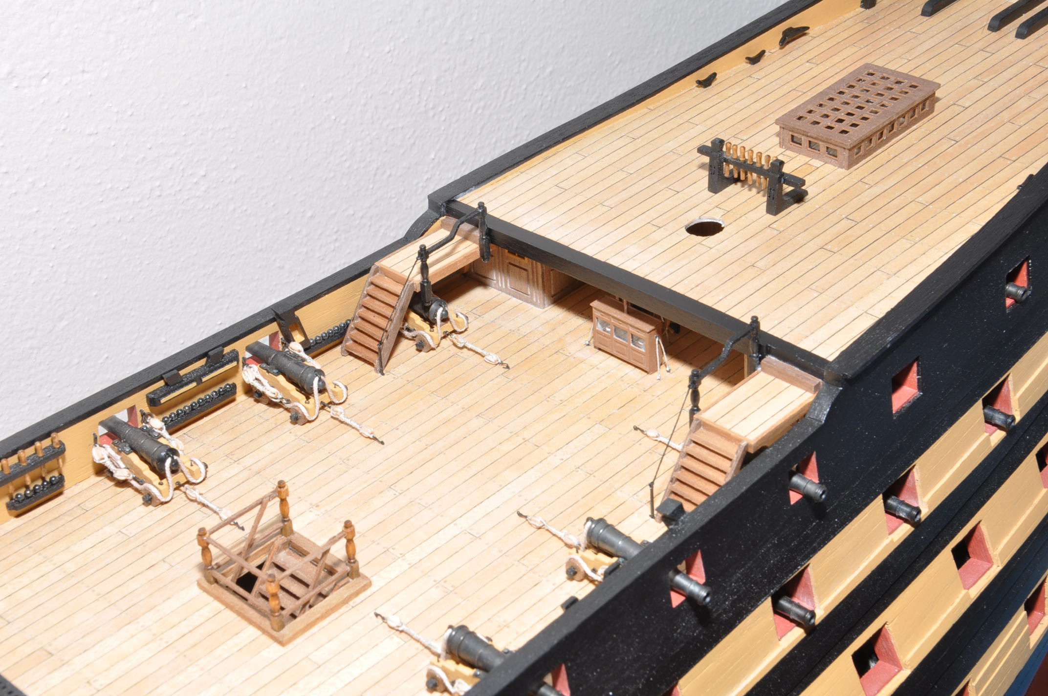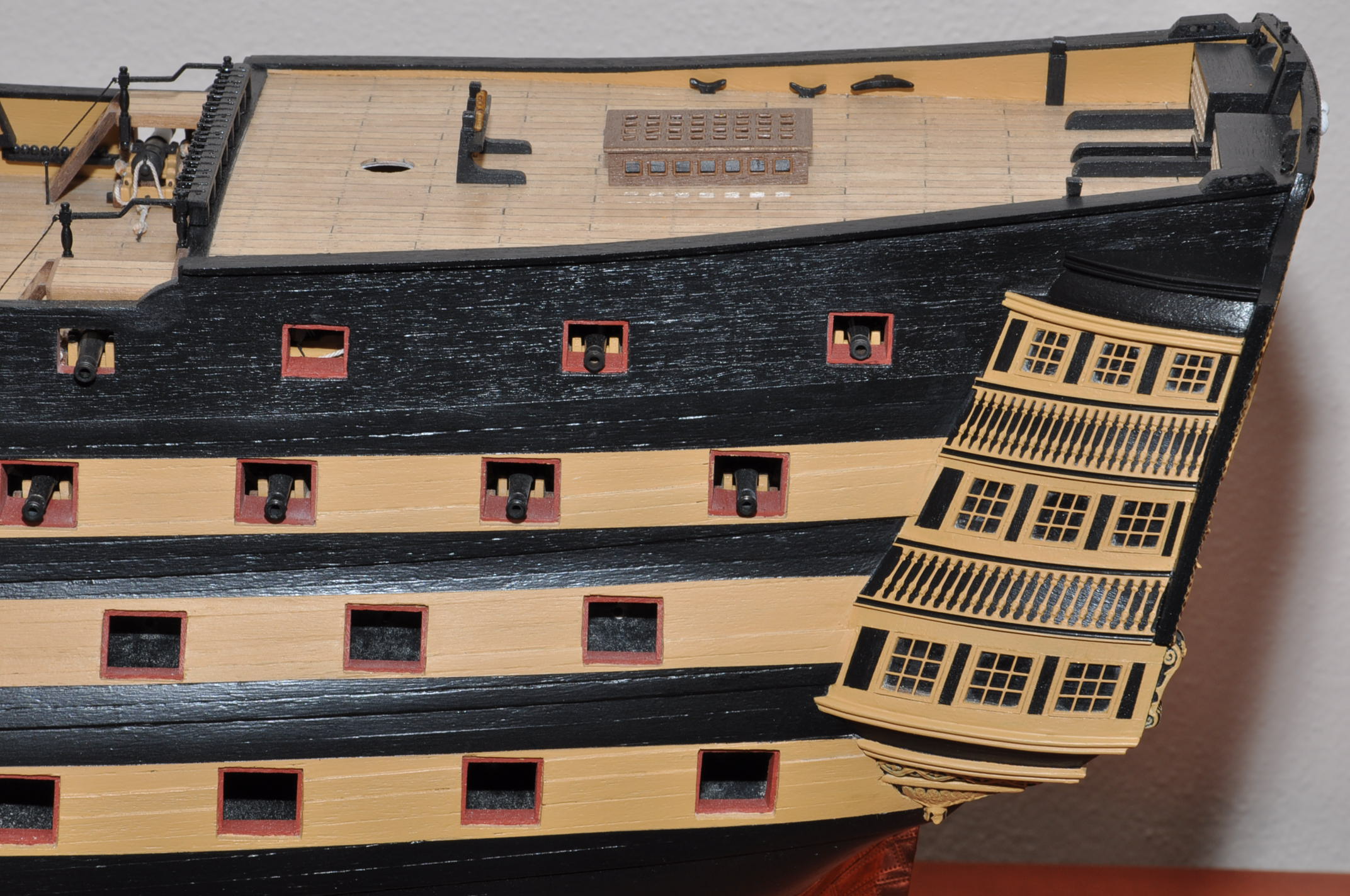 Witam . Figura galionowa skończona. Ostatni pokład wykonany łącznie ze świetlkiem , skrzynkami na flagi , knagami i pomniejszymi szczegółami :) . Pozdrawiam