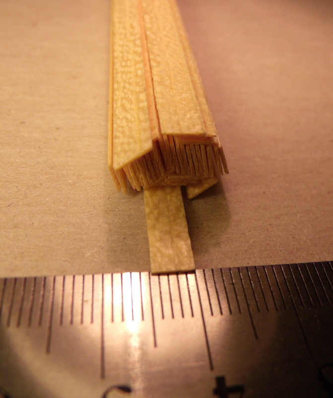 pozostawić na zaś. Natomiast rżnięcie, jak mówi teoretyk Banita, spowoduje, iż szerokość desek będzie mniejsza niż 2,5mm, a wg Karola to węższe chyba być nie powinny. Byłby sposób na pocięcie wzdłużne skalpelem tych centkowanych desek po uprzednim skonstruowaniu prostej przyrzni. Ot taka zabawa, nawet nie benedyktyńska byłaby...