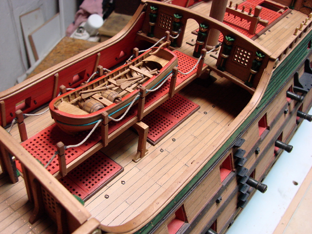 Trochę miałem dłubania przy modelu.Dorobiłem trzecią szalupę której nie będzie przeszkadzał pomost i w razie potrzeby czterech marynarzy z łatwością ją wydostanie.Tak pewnie musiało być w realu.Zamocowałem też nowy ster.Poprzedni poszedł na złom ze względu na okucia.Teraz męczę lewki bliżniaki.Jeden już wesoły,drugi nieco mniej.Zobaczymy czy wyjdą jednojajowe