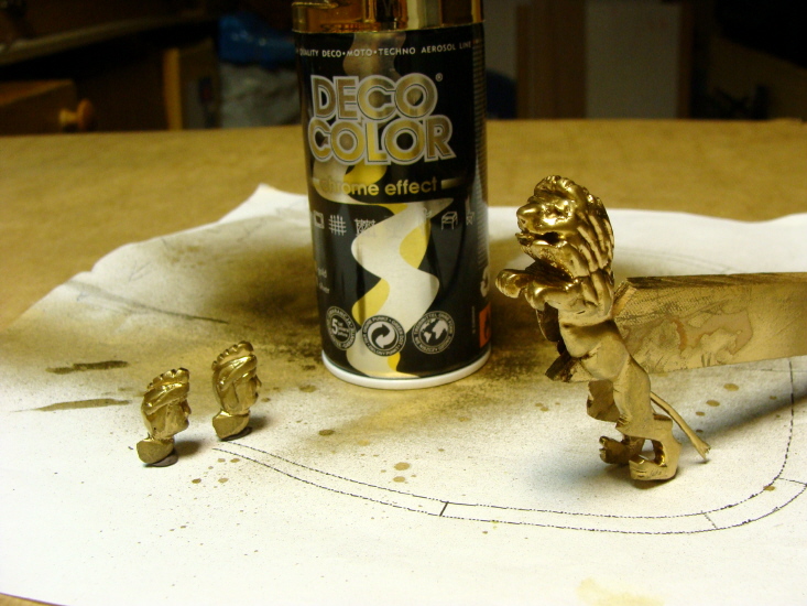 W sklepie z farbami trafiłem na złoty lakier spray z chromowym efektem.Kryje bardzo ładnie po wcześniejszym zagruntowaniu.Ma ładny metaliczny blask.Myślę,że po jakimś czasie nieco zmatowieje,ale to nie feler.Pozdrawiam.K.