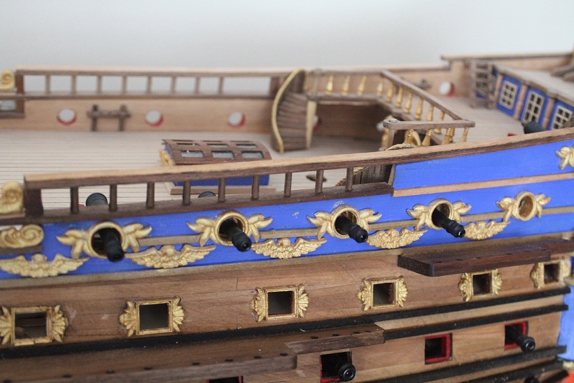 Cały kadłub został zakonserwowany miksturka składającą się z wosku oleju i bejcy, które zostały niedokładnie wymieszane aby uzyskać niejednolity kolor zabarwienia drewna co bardziej realistycznie oddaje delikatne ślady użytkowania okrętu. Zostawiam ją na jakiś okres czasu aby dobrze weszła w pory drewna.