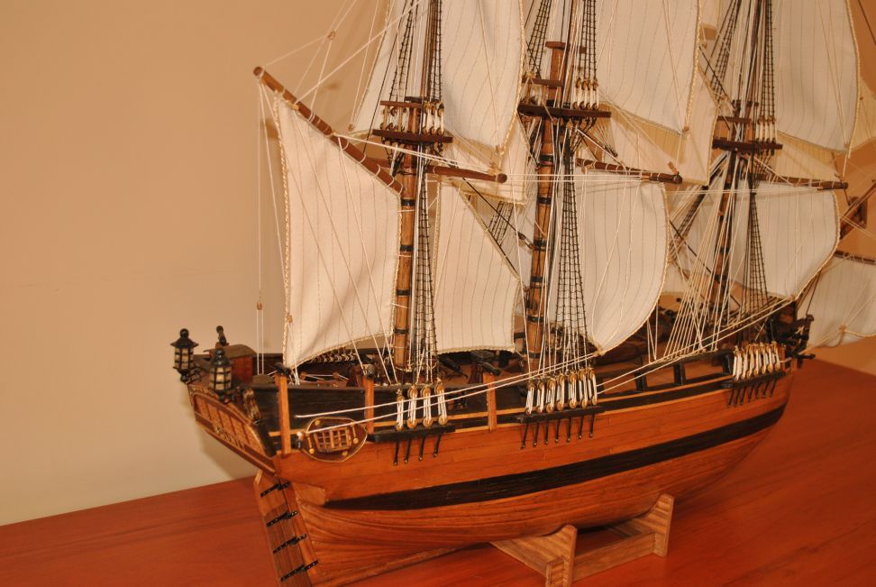 Poszycie fornirowe na razie musi poczekać. Odbojnica jest tylko zaznaczona fornirem z hebanu. W dalszym etapie prac pokłady. Może ktoś wie ile talii było przy masztach w tego typu żaglowcach. Co wciągały i jakie miały bloczki. Zabawa dopiero się zaczyna.