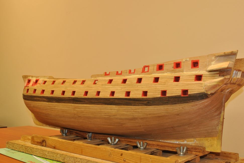 Kadłub ma ostateczny kształt. Przez krótki czas miał tymczasowe poszycie. Przyszedł czas na poszycie fornirowe i w związku z tym mam pytanie. Czy na Bellonie był felc w dolnym luku działowym.