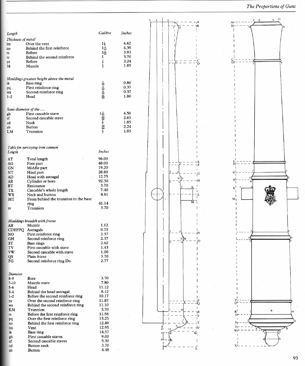 Nie wiem z jakich planów korzystasz.Jeśli z planów ogólnie dostępnych w sieci,to taki kształt armaty tam jest ale jest niepoprawny.Dorzucam jeszcze dwa skany brytyjskiej armaty z tego okresu.Co do toczenia z ręki to naprawdę jest trudno o idealną powtarzalność.Jeśli masz kiepski materiał to tocz zgrubnie a wykańczaj iglakami i drobnym papierem ściernym.Lepsze już byłyby wałki z buczyny niż sosnowe.Można je kupić np. w Obi lub Castoramie.Pozdrawiam.K.